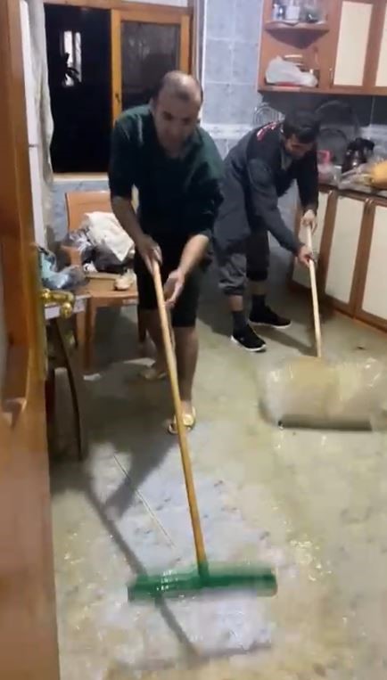 Kökez Mahallesi'nde ise evleri su basan vatandaşların sokağa çıktığı ve neredeyse bellerine kadar gelen su yüksekliğinde ilerlediği görüntülere yansıdı.