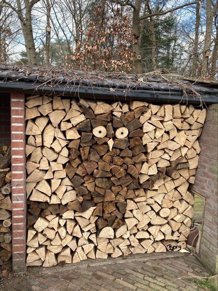 Bir başka yaratıcı örnek de odunlarla yapılan desenler. Bir odunlukta baykuş figürü oluşturulmuş mesela. Sadece renk farklılıkları ve düzenleme biçimiyle… Veya başka bir örnekte ağaç formu verilmiş, sanki bir ressamın fırçasından çıkmış gibi. Bu çalışmalar sadece estetik değil, aynı zamanda doğaya olan saygının da bir yansıması.