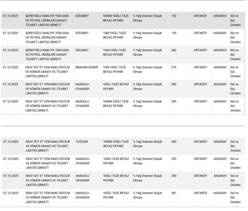 Bakanlık peynirlerde özellikle yağ oranının yazıldığı seviyede olmadığını belirledi. Hileli çıkan peynir markaları şunlar: