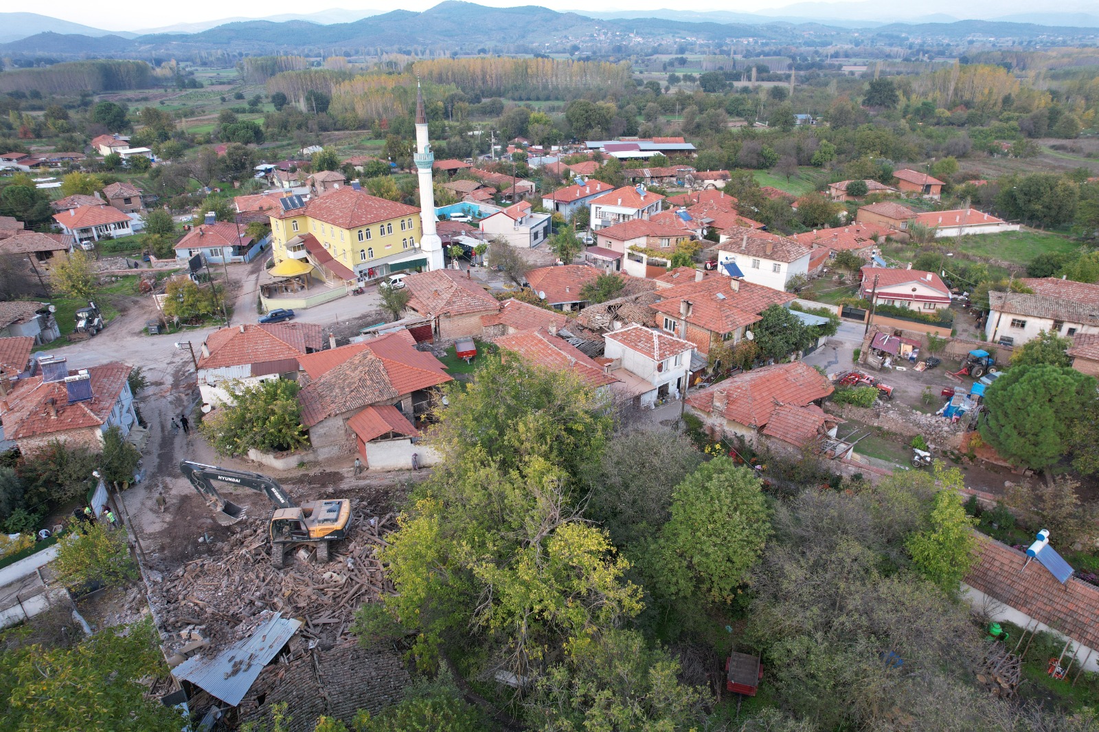 Balıkesir’in Sındırgı ilçesinde son depremlerin ardından yapılan hasar tespit çalışmalarında ağır hasarlı olduğu belirlenen kırsal mahallelerdeki yapılarda kontrollü yıkımlar sürüyor.