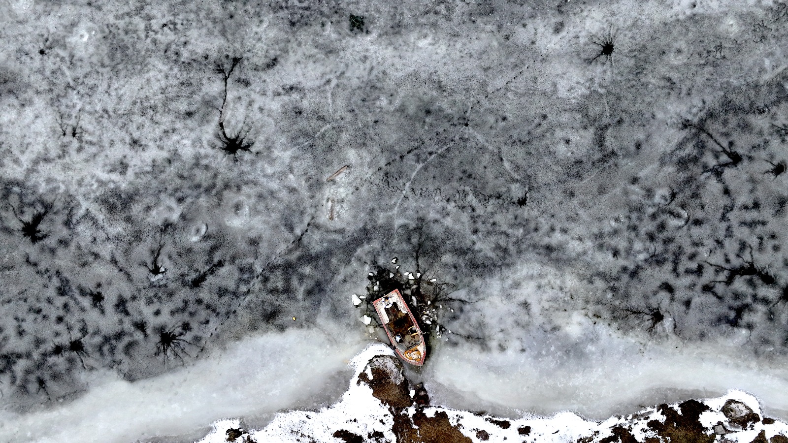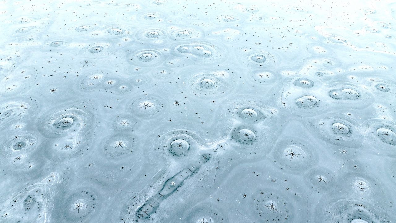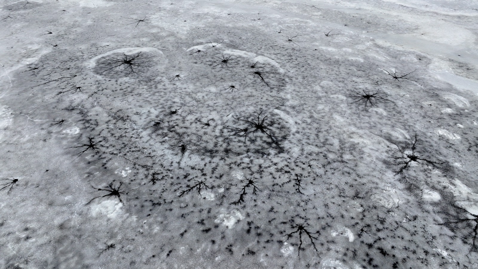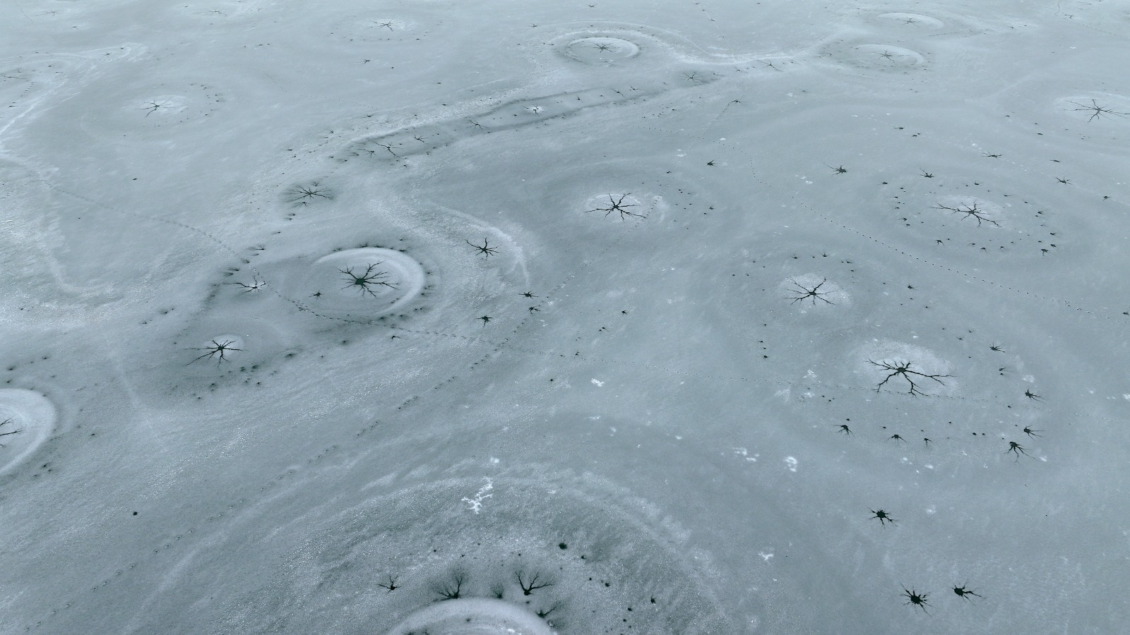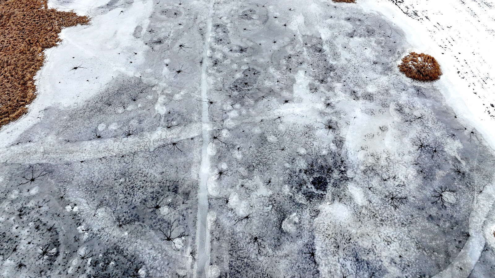 Dronla kaydedilen görüntülerde, göl yüzeyinde halka şeklinde oluşan buz yapıları ve bu halkaların merkezinden dışa doğru yayılan çatlaklar dikkat çekti. Beyaz ve açık mavi tonların hâkim olduğu buz tabakası, havadan bakıldığında insan gözünün iris ve göz bebeğini andıran desenler oluşturdu.