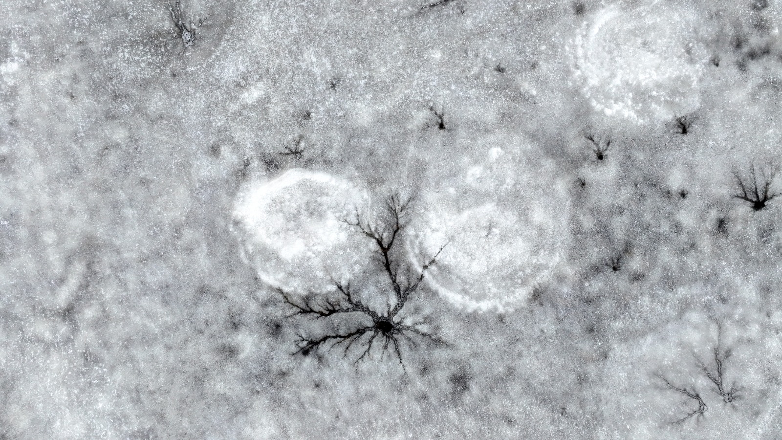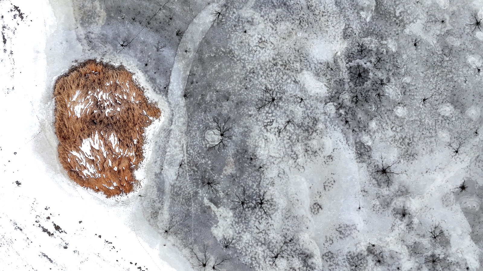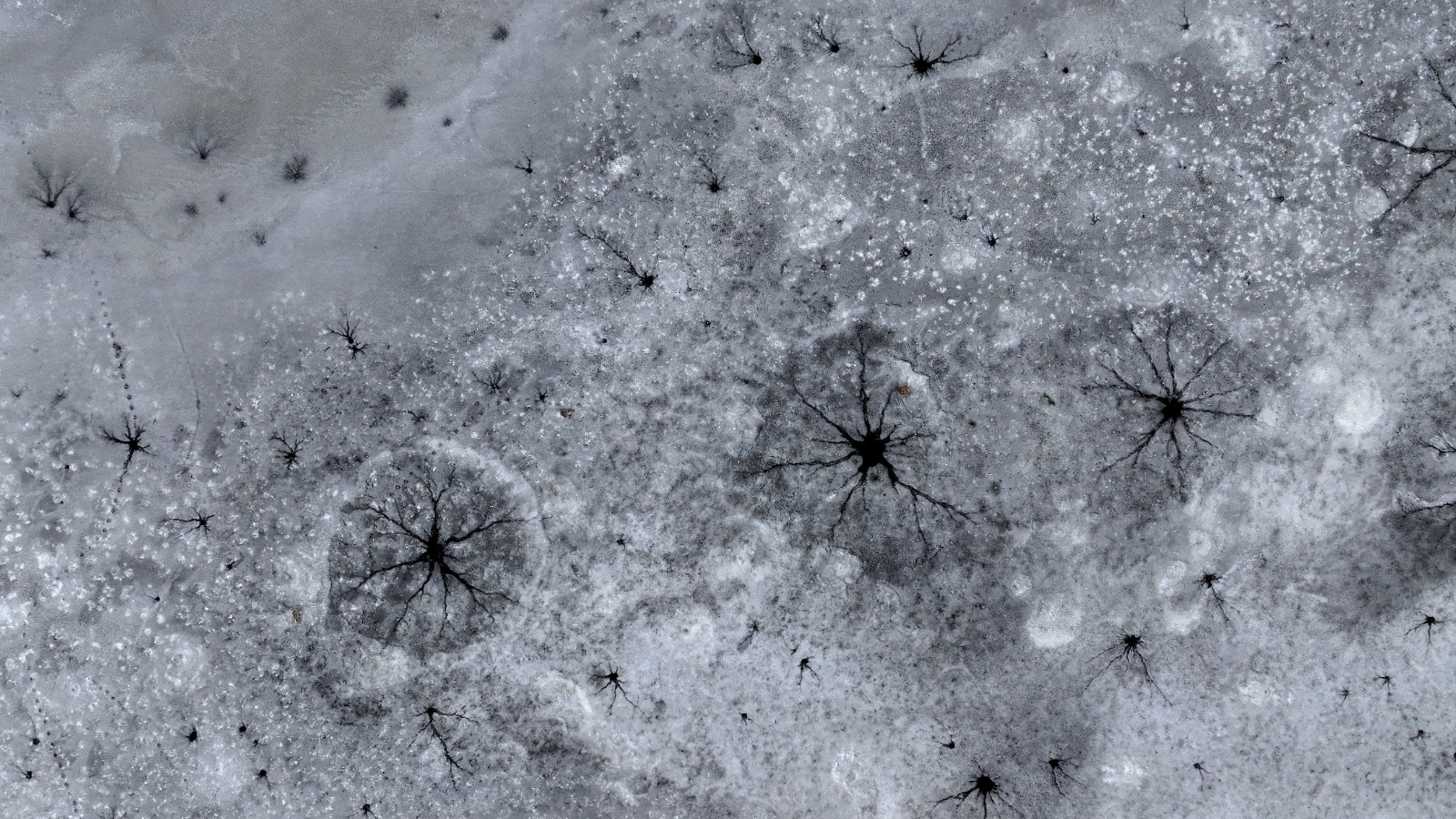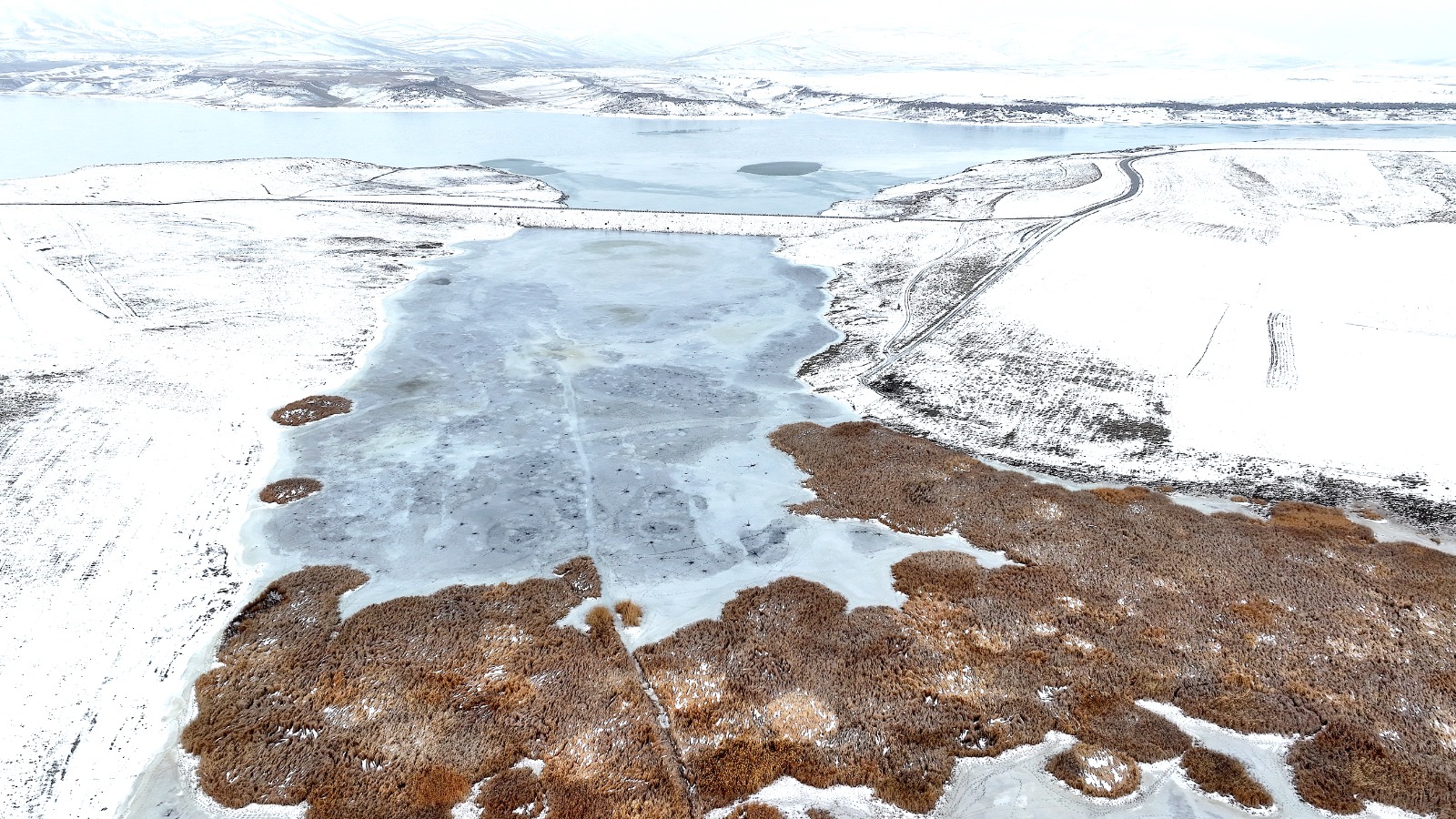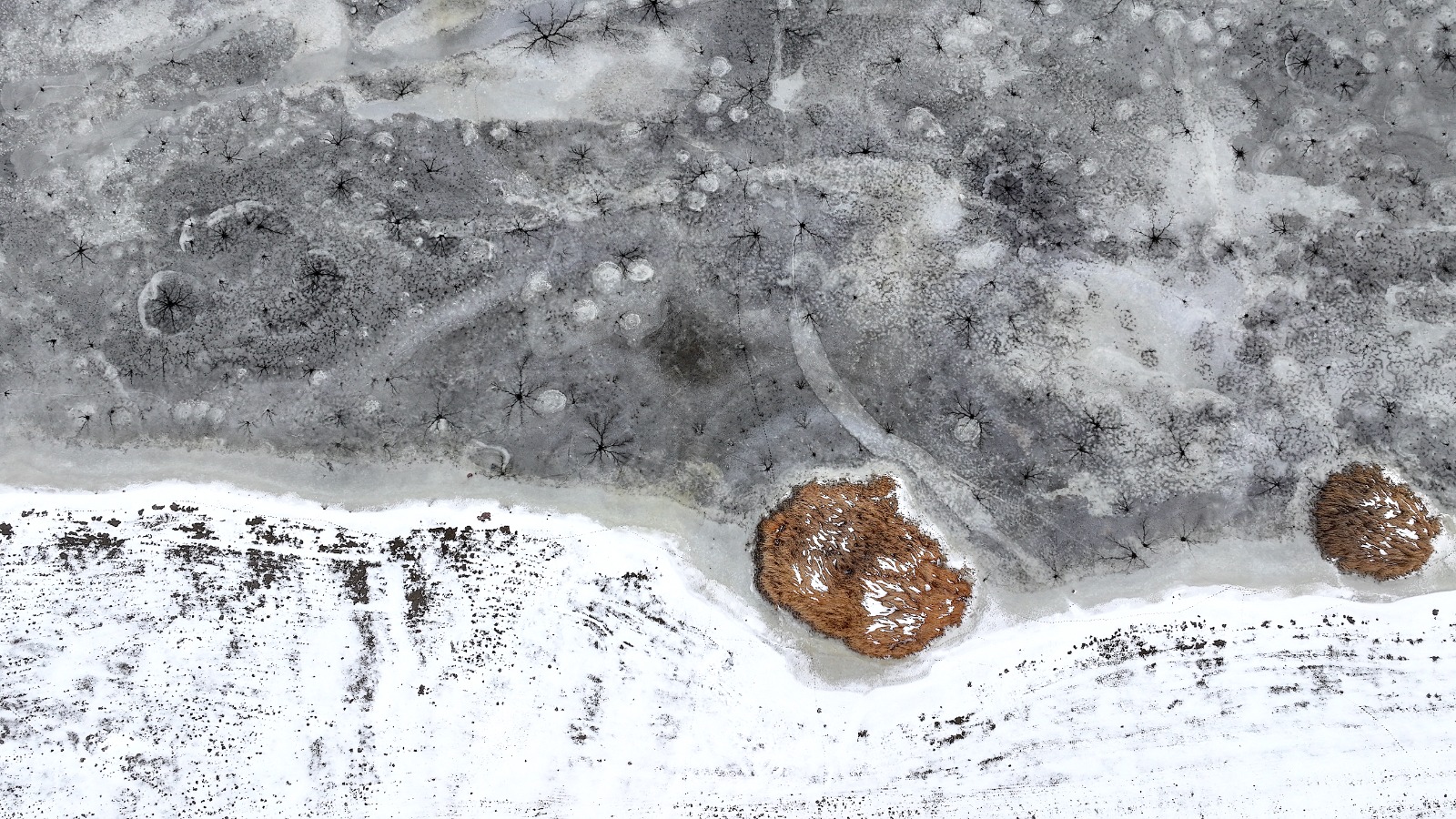 Dronla kaydedilen görüntülerde, göl yüzeyinde halka şeklinde oluşan buz yapıları ve bu halkaların merkezinden dışa doğru yayılan çatlaklar dikkat çekti. Beyaz ve açık mavi tonların hâkim olduğu buz tabakası, havadan bakıldığında insan gözünün iris ve göz bebeğini andıran desenler oluşturdu.