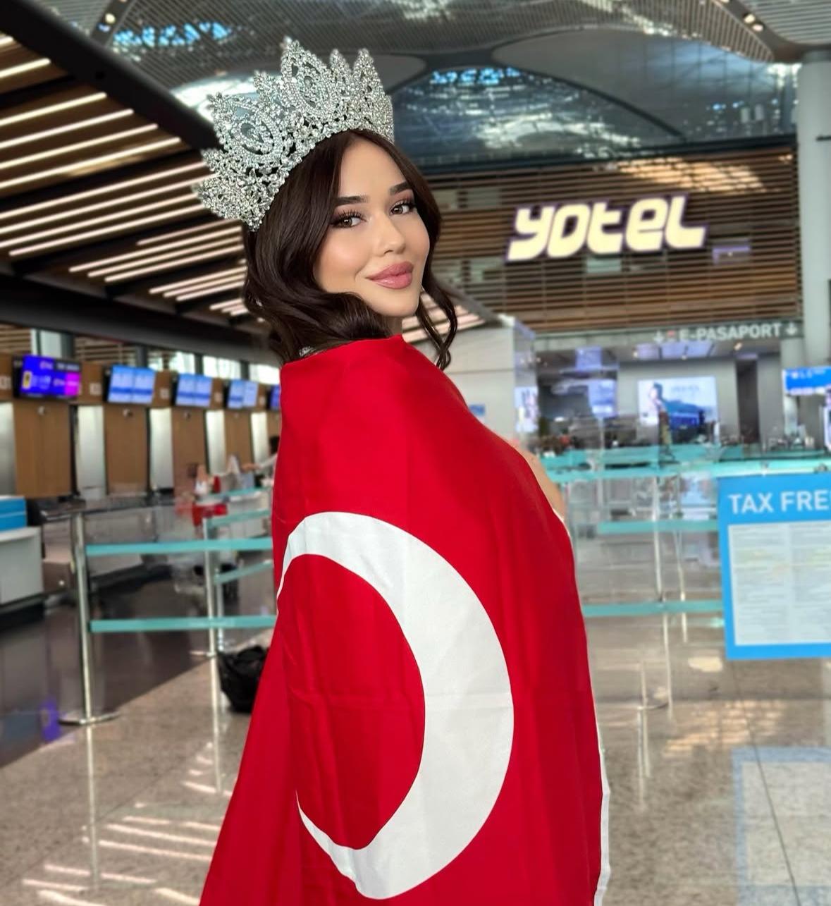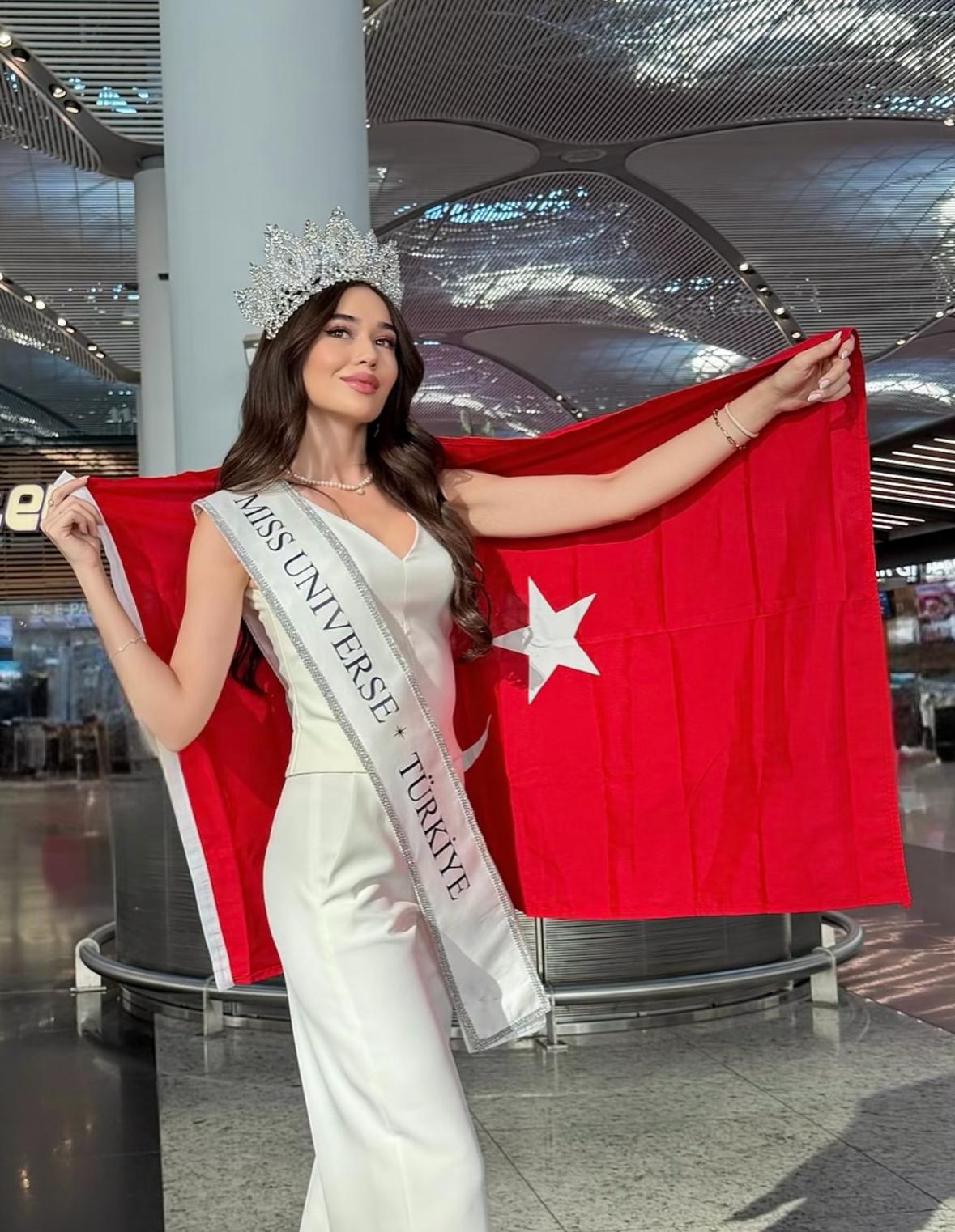 2025 Miss Universe yarışmasında Türkiye’yi temsil edecek Ceren Arslan, kırmızı-beyaz bayrağımızla poz verdi.
