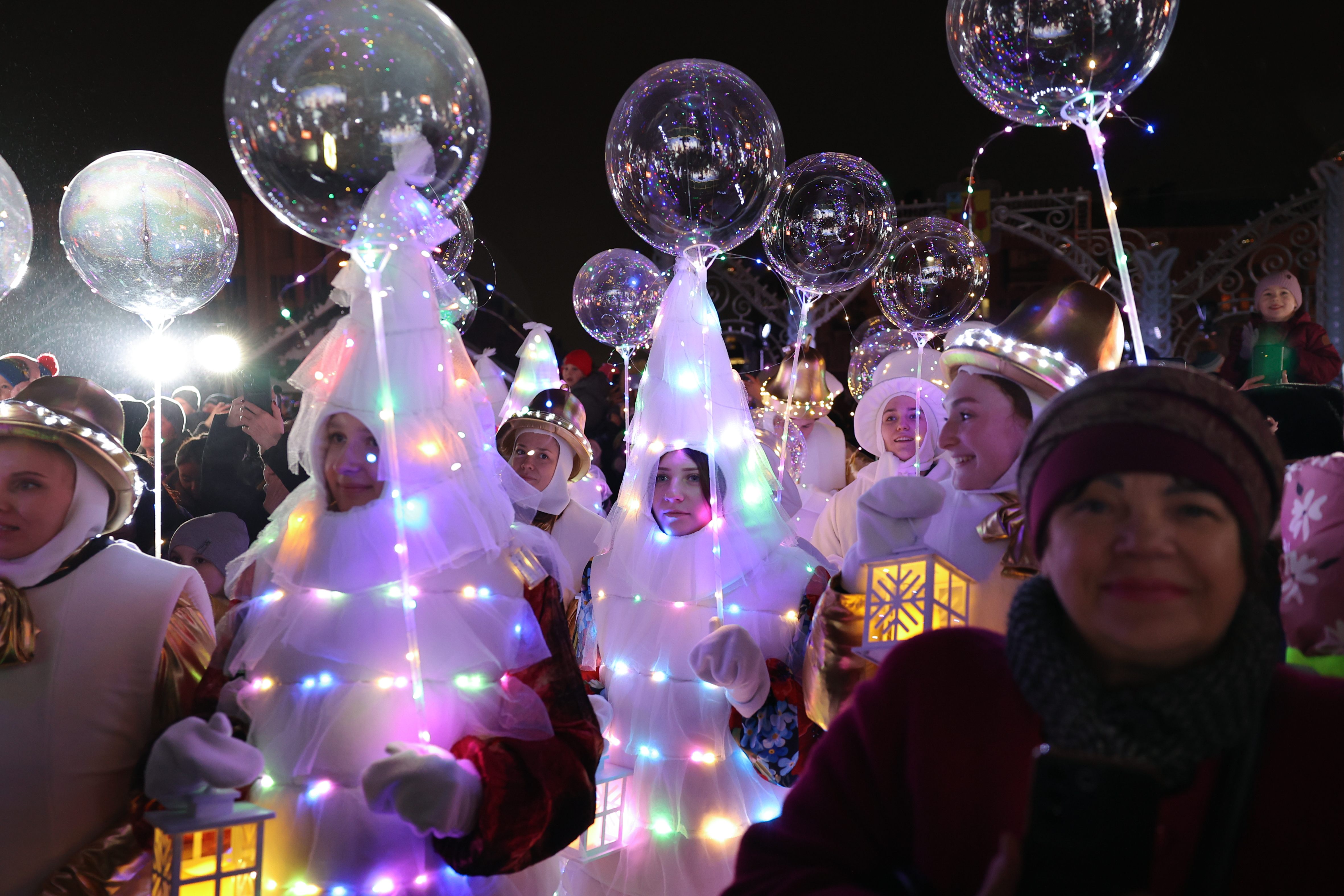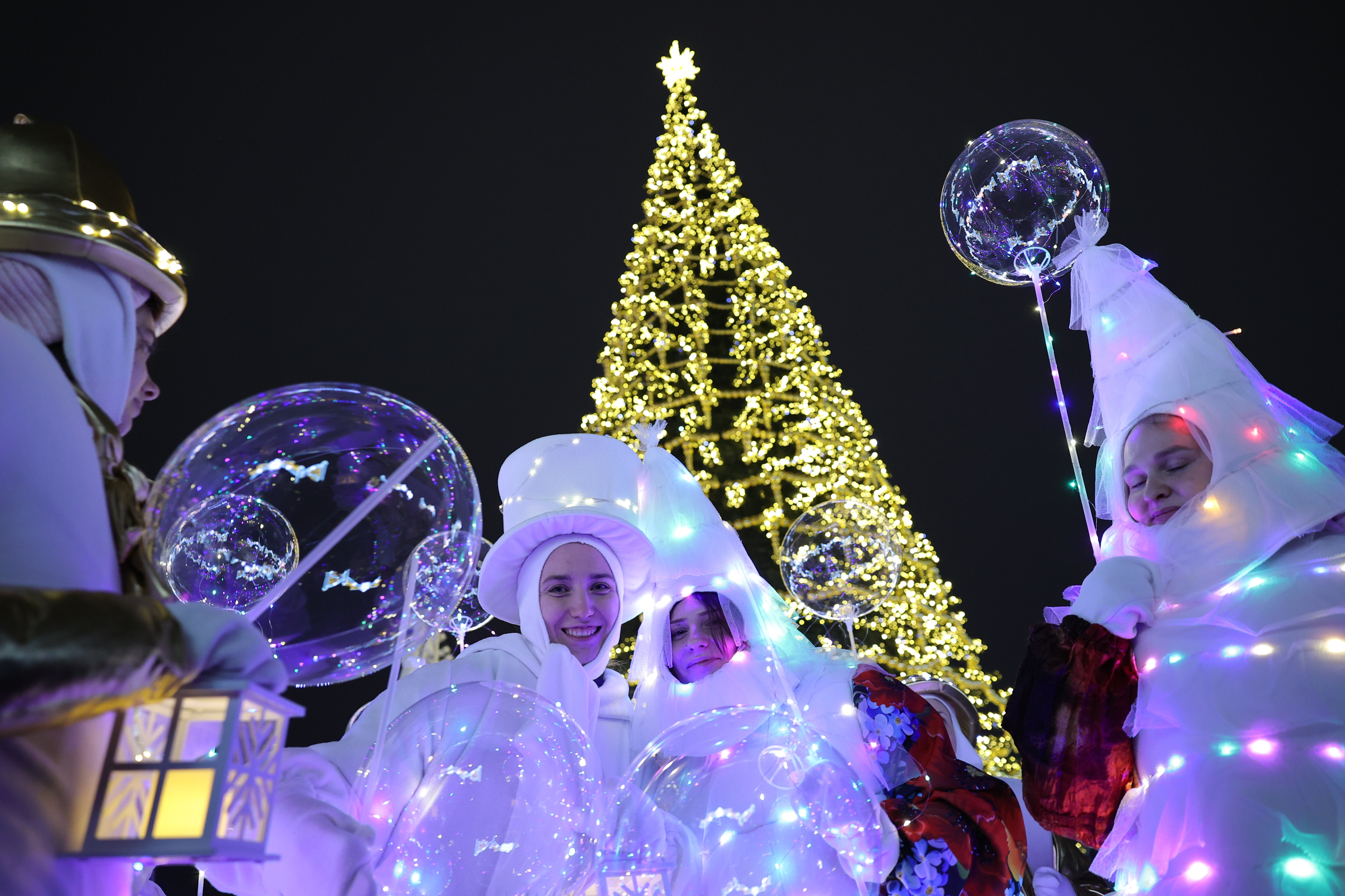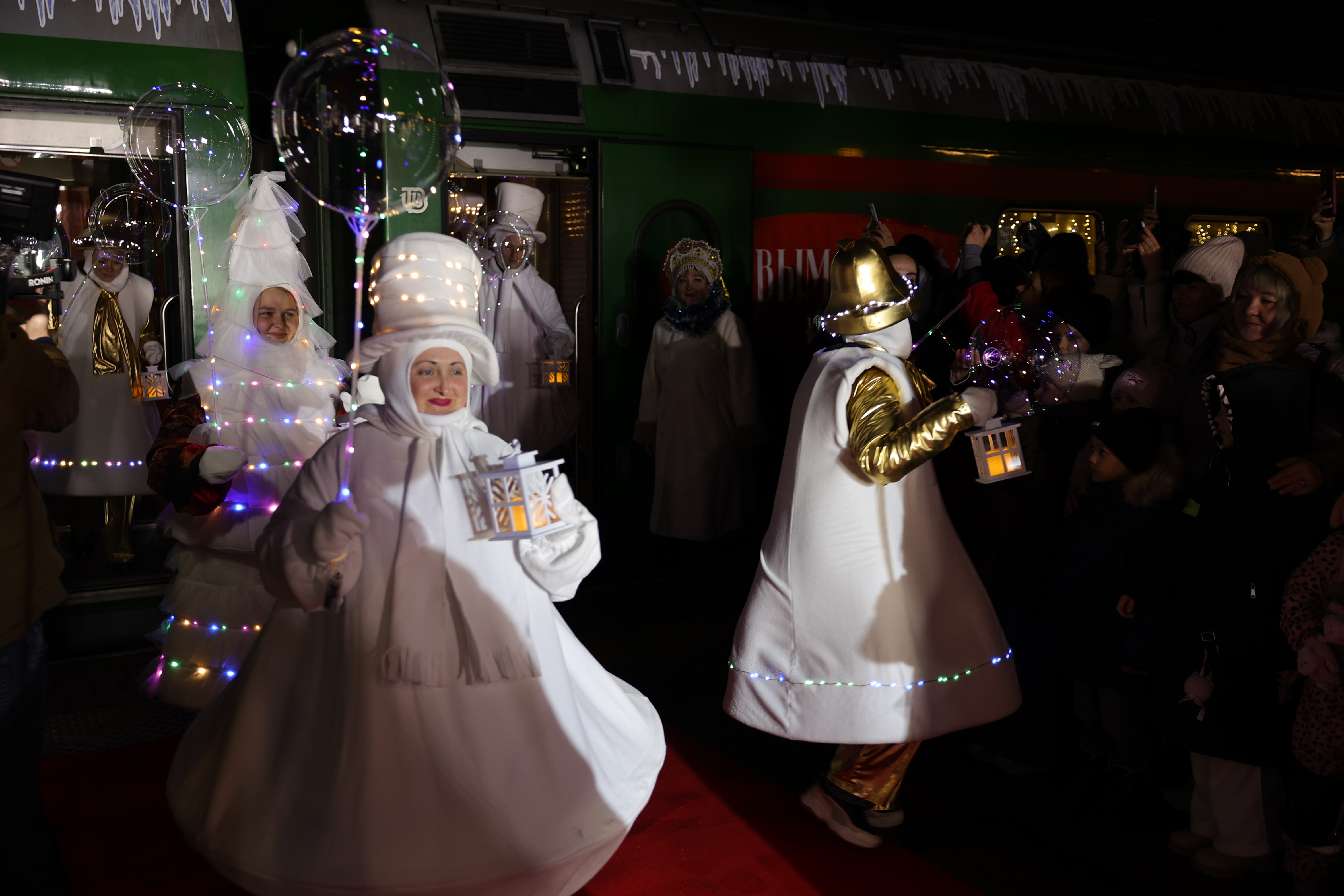 Çeşitli süslemelerle dekore edilen trenle kente gelen Ded Moroz, masal karakterleriyle birlikte Katedral Meydanı’nda düzenlenen etkinlikte yılbaşı ağacının ışıklarını yaktı.