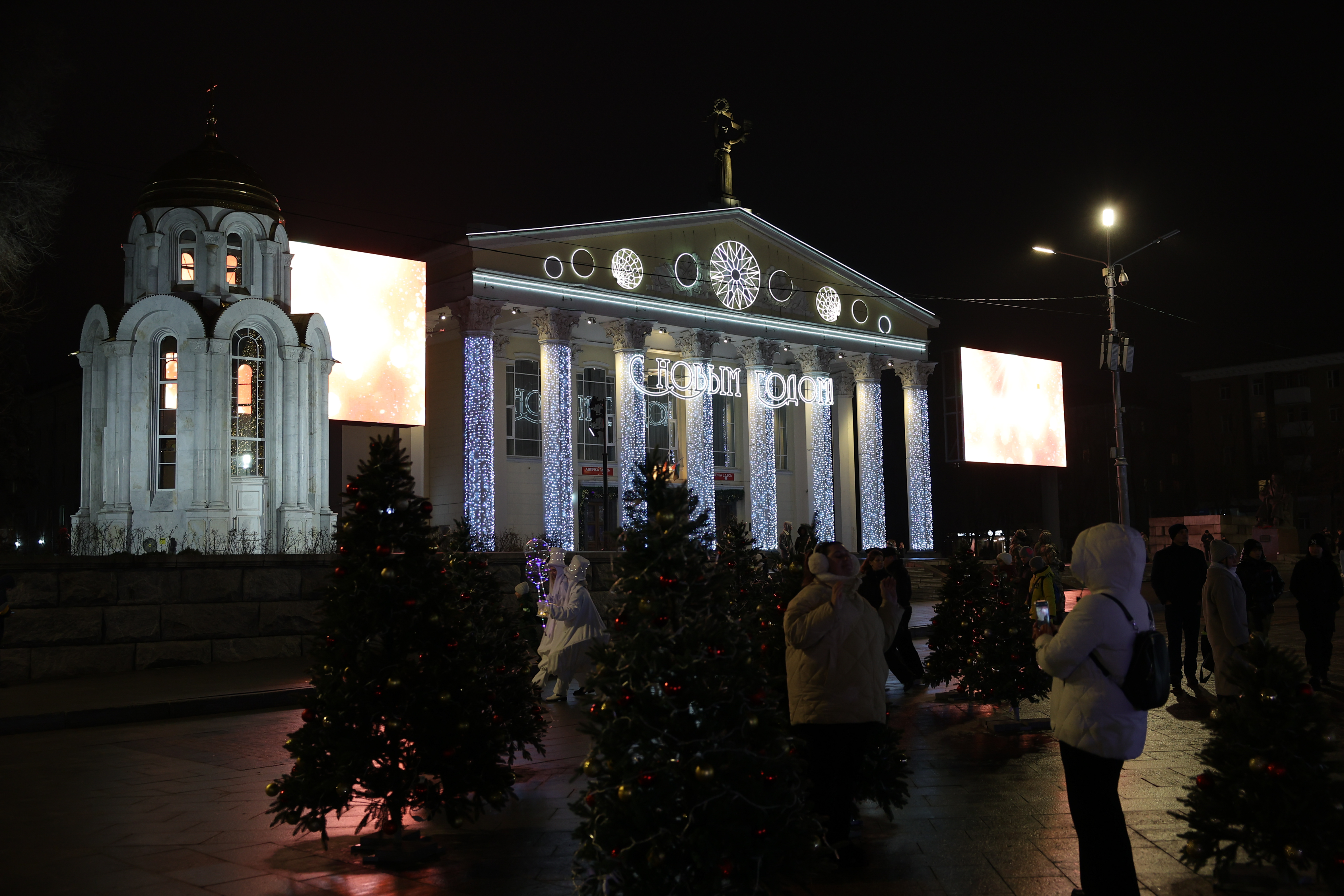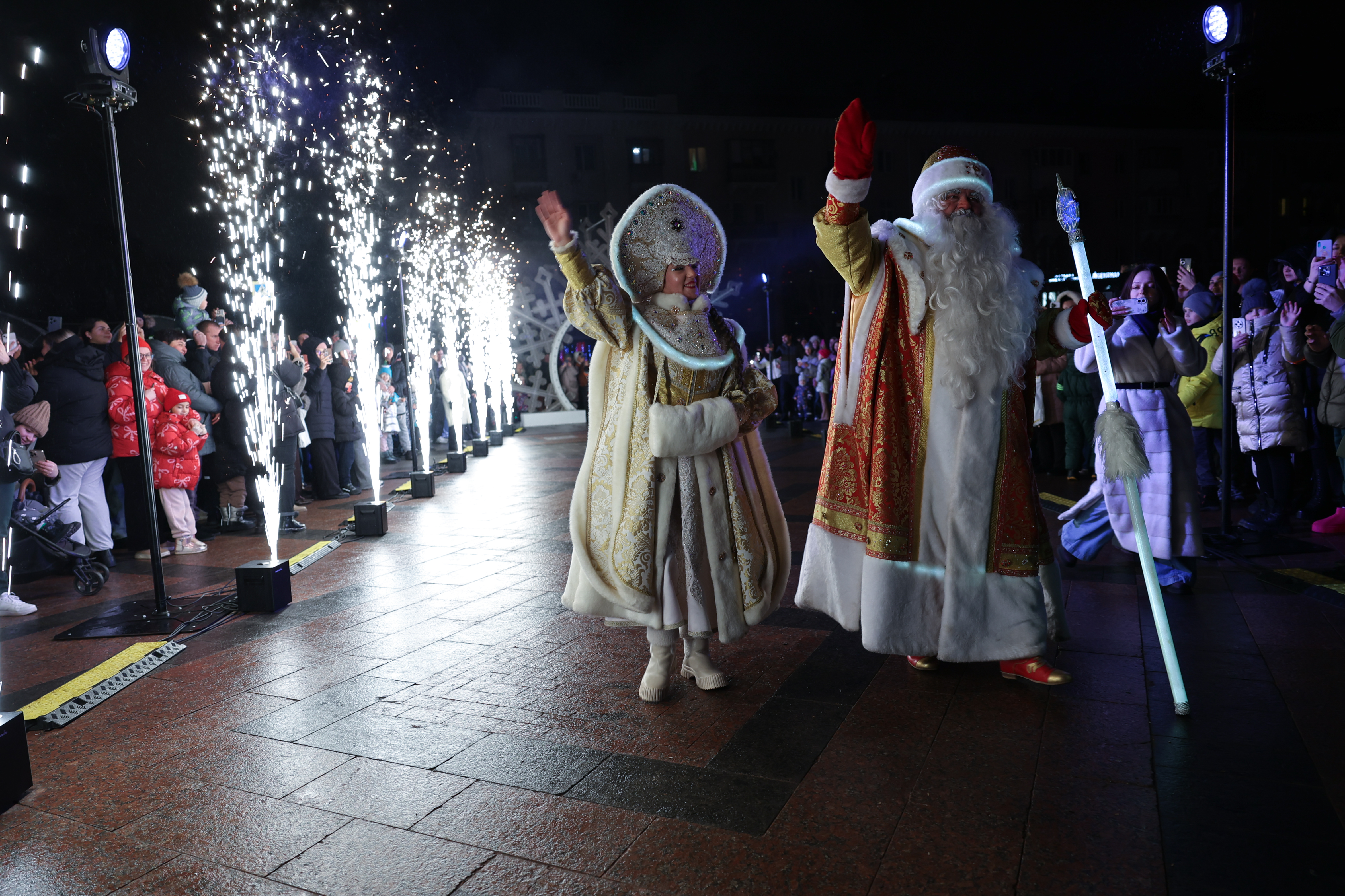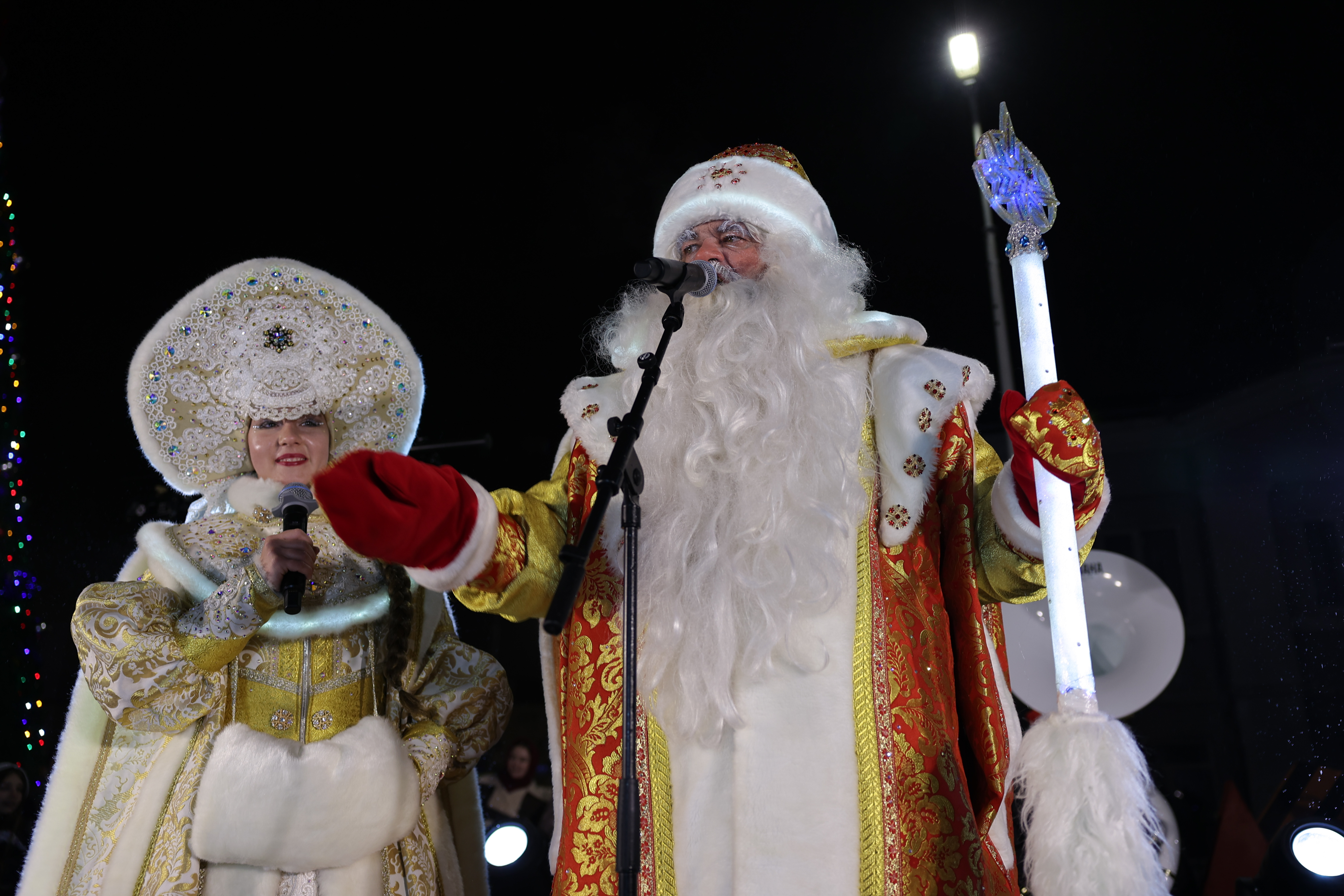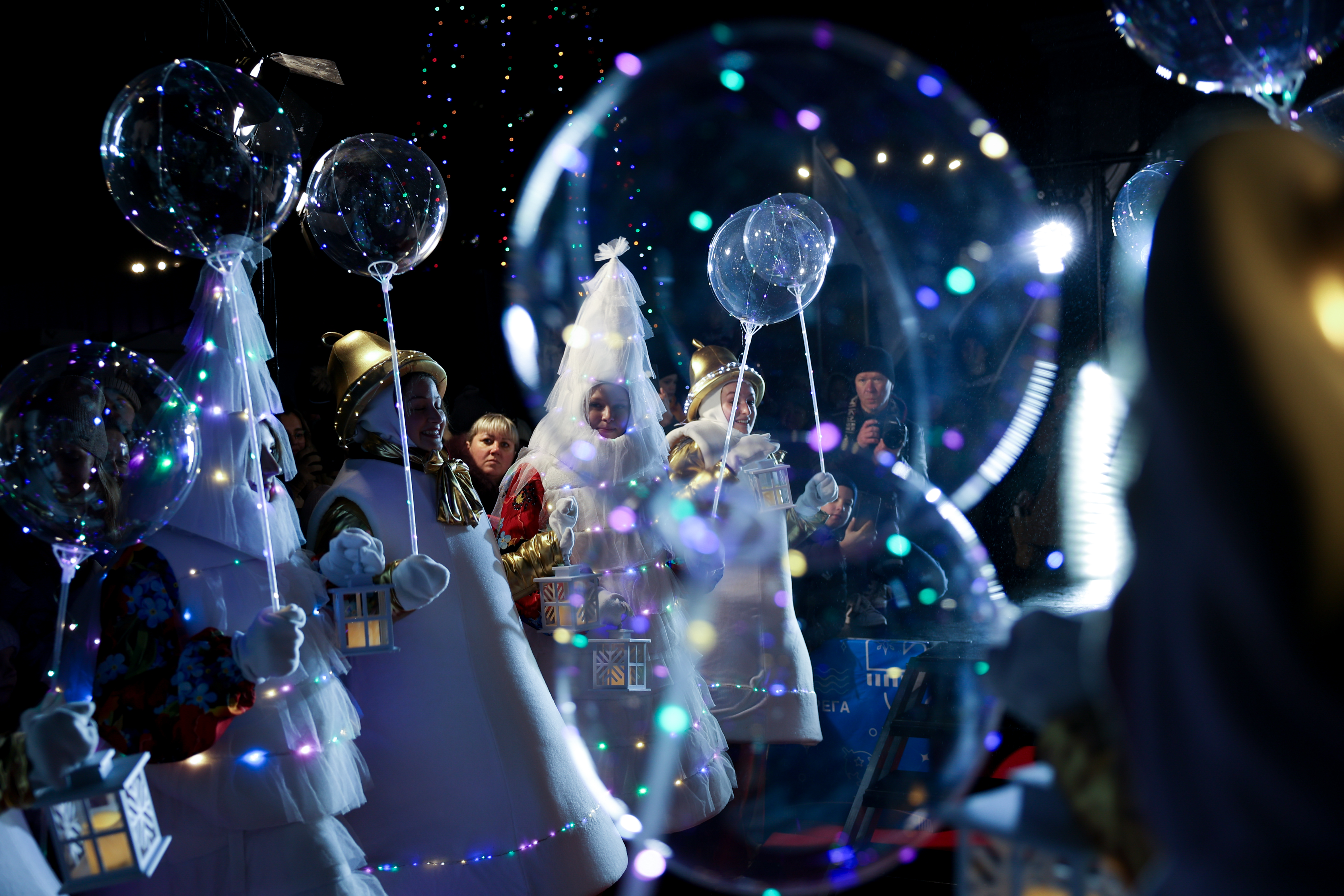 Çeşitli süslemelerle dekore edilen trenle kente gelen Ded Moroz, masal karakterleriyle birlikte Katedral Meydanı’nda düzenlenen etkinlikte yılbaşı ağacının ışıklarını yaktı.