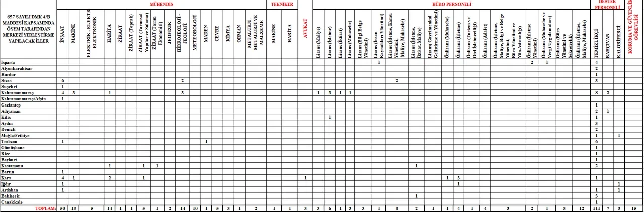 Toplam 59 personel alınacak. Öne çıkan kadrolar: