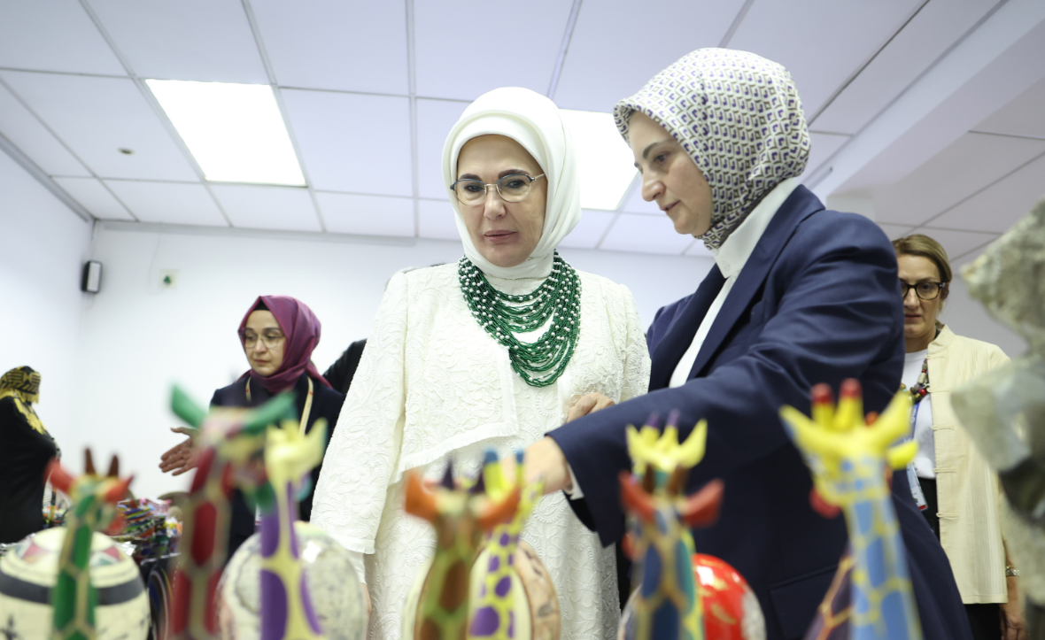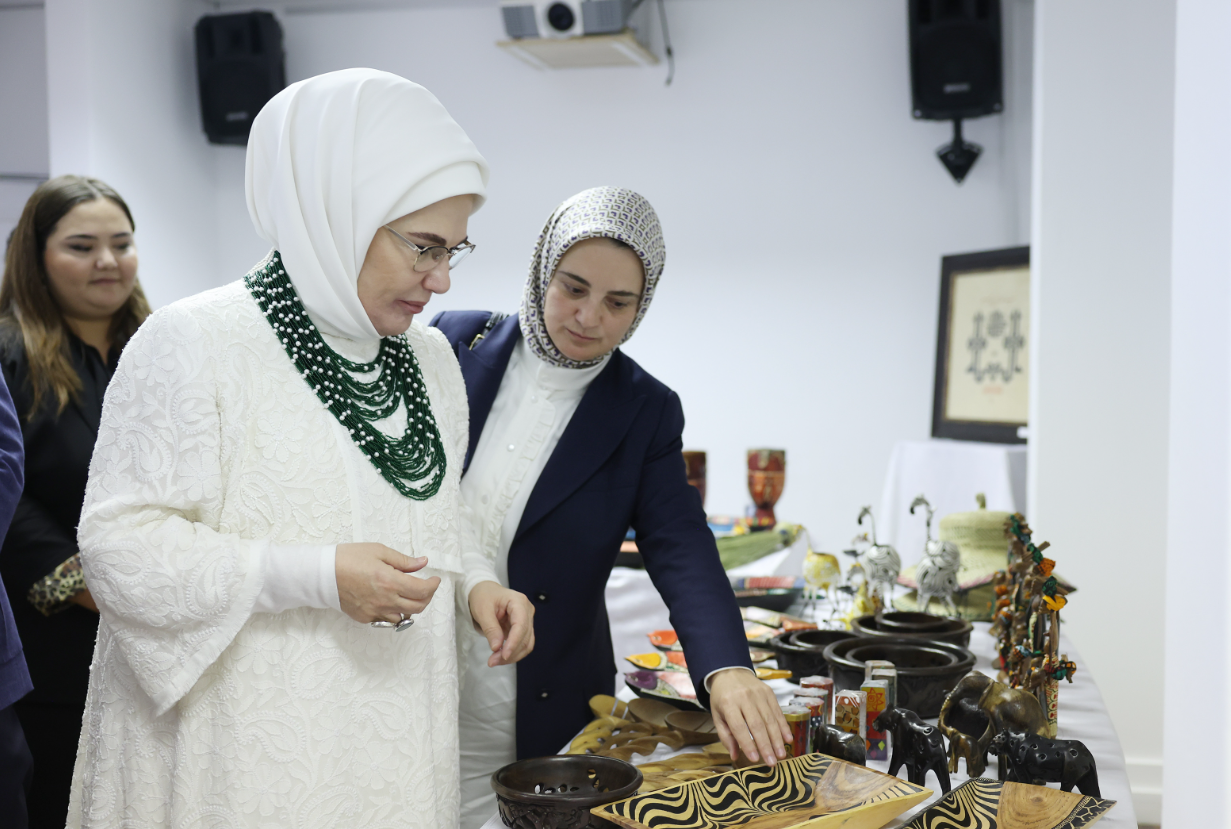 Ziyarete Afrika Kültür Evi Başkanı Zeliha Sağlam ve gazetecilerin de katıldığı programda kültürel işbirliği alanlarına ilişkin görüş alışverişi yapıldı. Emine Erdoğan, eserlerle ilgili ayrıntılı bilgiler aldı.