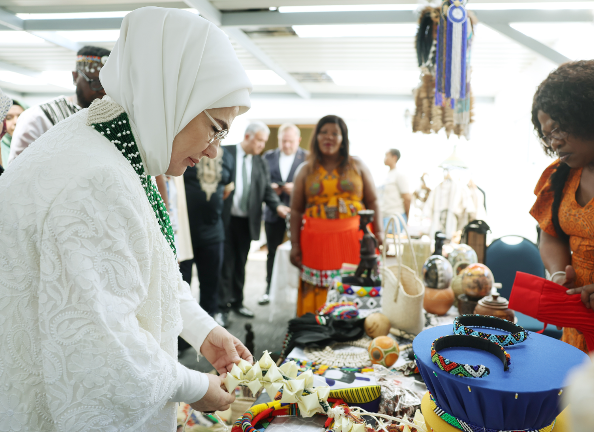 Emine Erdoğan, sergi alanında Güney Afrika ile Türkiye’nin kültürel mirasını buluşturan eserleri inceledi. Sergide iki coğrafyanın tarihsel izlerini taşıyan objeler yer aldı.