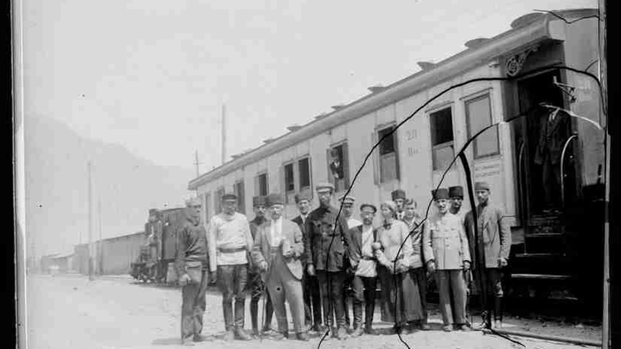 Fahreddin Paşa Medine istasyonu önünde Padişah Vahdeddin'in iradesini okurken