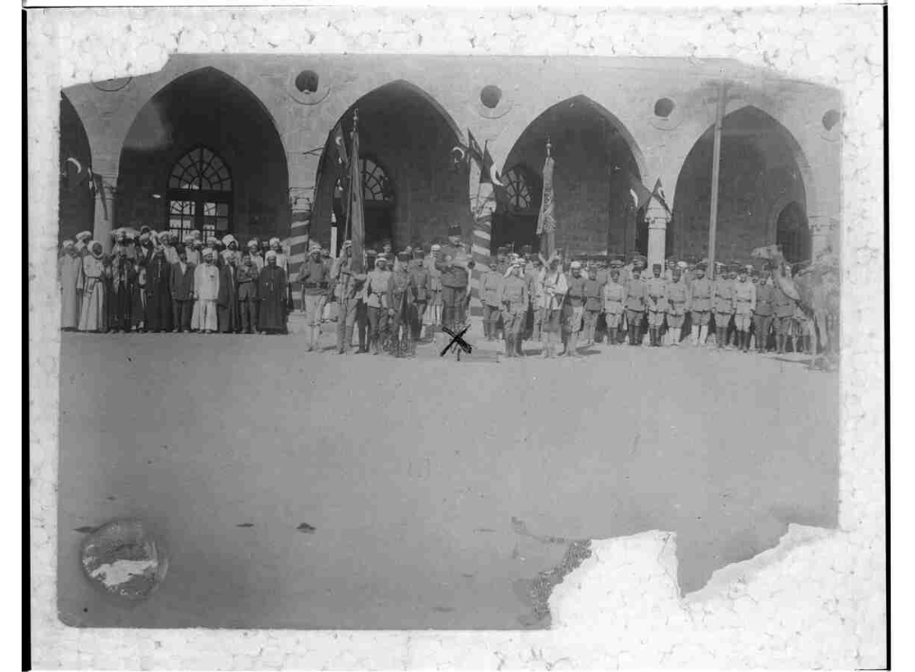 Fahreddin Paşa tarafından Medine'de Mescid-i Nebevi'de 42. ve 55. Alayların sancaklarına muharebe madalyası takılması töreni
