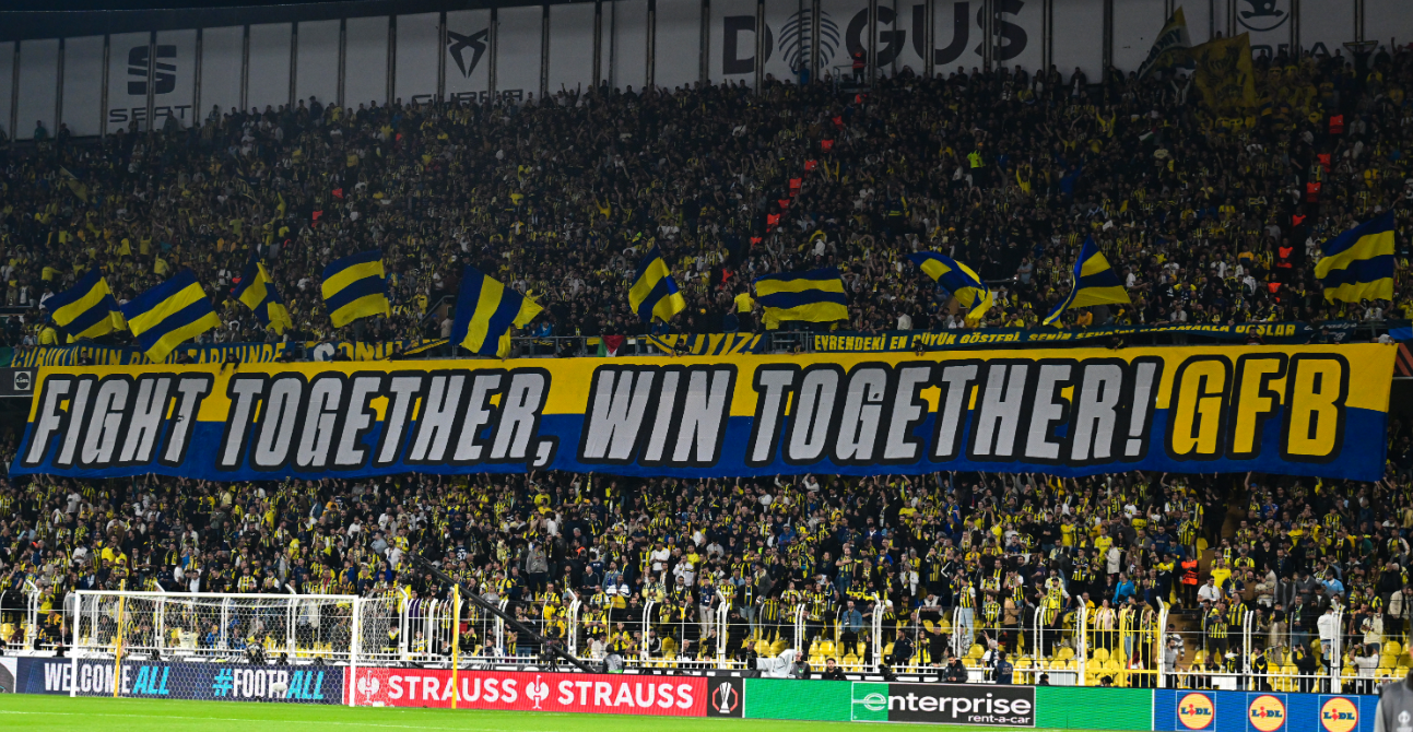 Fenerbahçe taraftarı “Fight Together, Win Together” pankartı açtı.