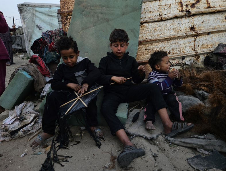 Gazze’nin güneyindeki Han Yunus kentinde, derme çatma çadırlarda yaşamını sürdüren yerinden edilmiş Filistinliler, kışın ağır koşullarıyla mücadele ediyor.