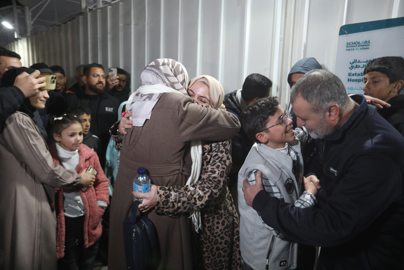 Refah Sınır Kapısı üzerinden Gazze Şeridi’ne dönen 21 Filistinli, Han Yunus kentinde bulunan Nasır Hastanesi’nde ailelerine kavuştu.