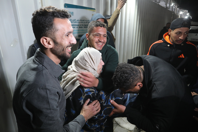 Birleşmiş Milletler’e ait araçlar eşliğinde gecenin ilerleyen saatlerinde hastaneye ulaşan Filistinliler, yakınları tarafından sevinç ve gözyaşlarıyla karşılandı.