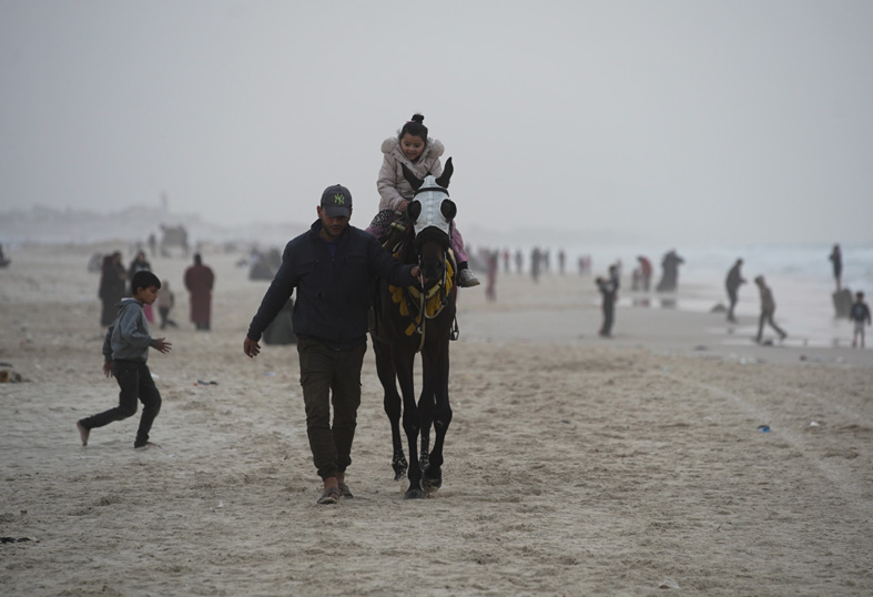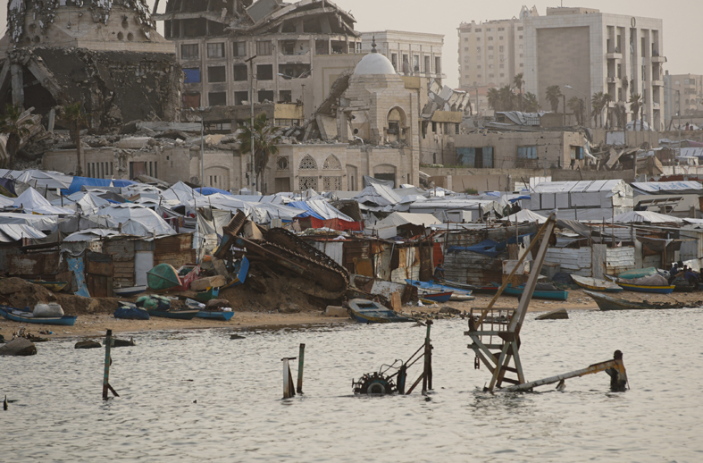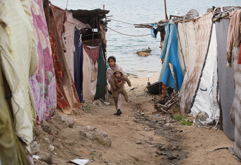 Gazze Şeridi’nin kuzeyinde yer alan Gazze kentinin sahil bölgesinde çadırlarda yaşayan Filistinliler, sahil kenarında vakit geçirdi.