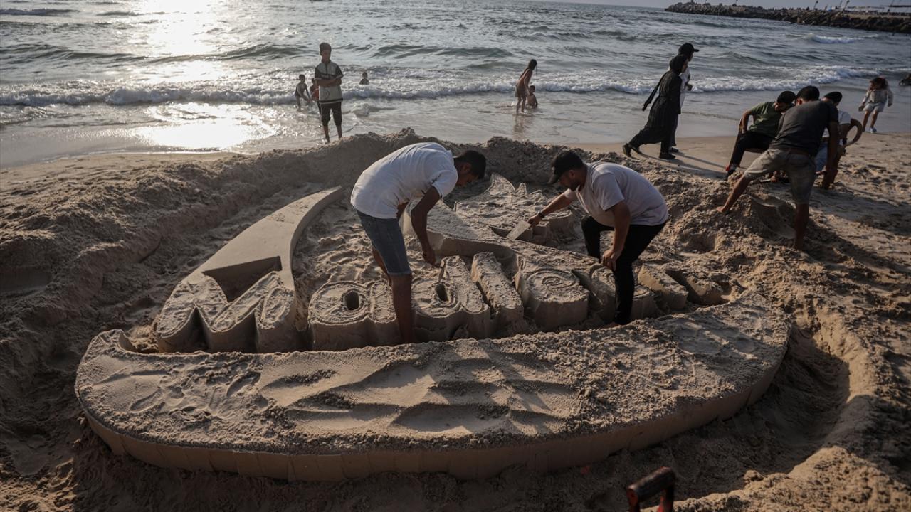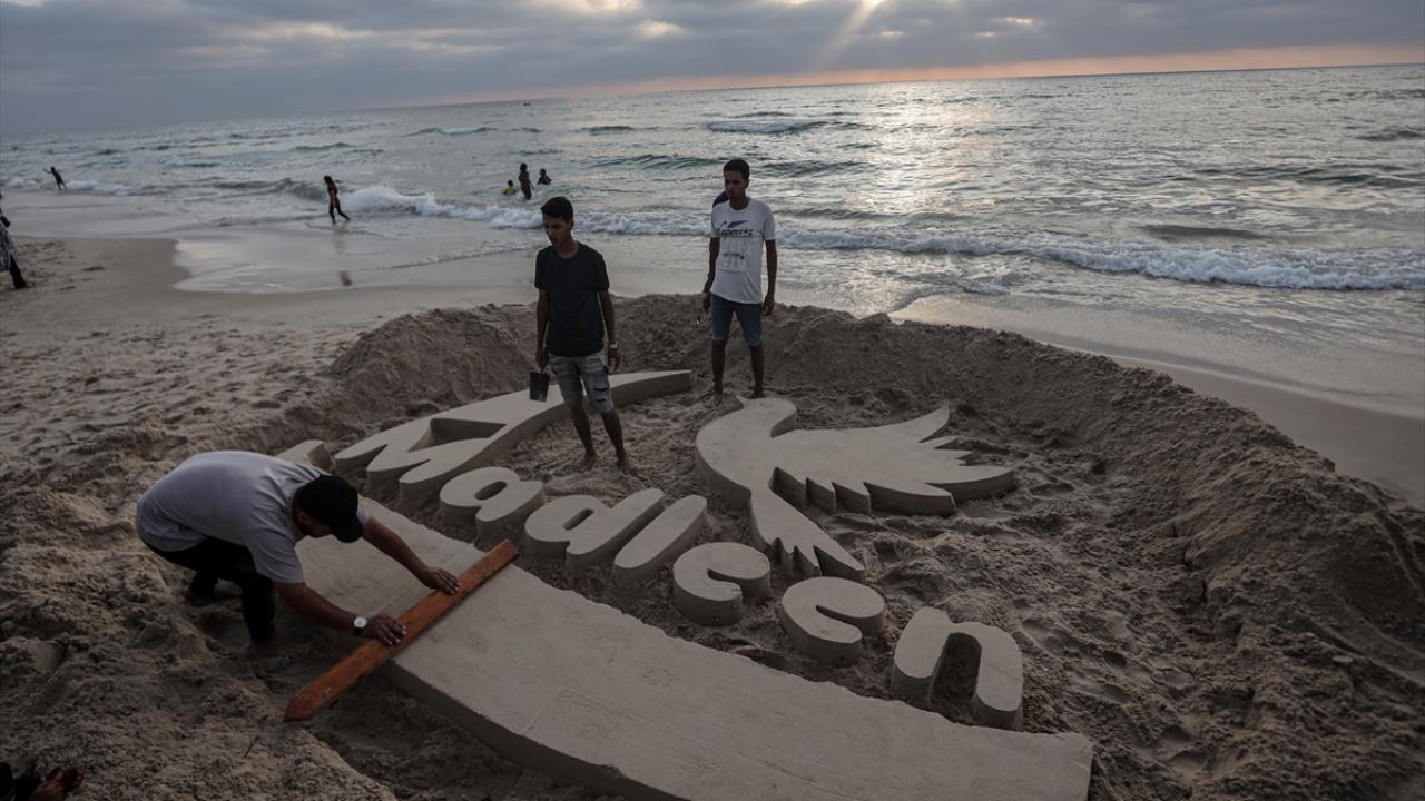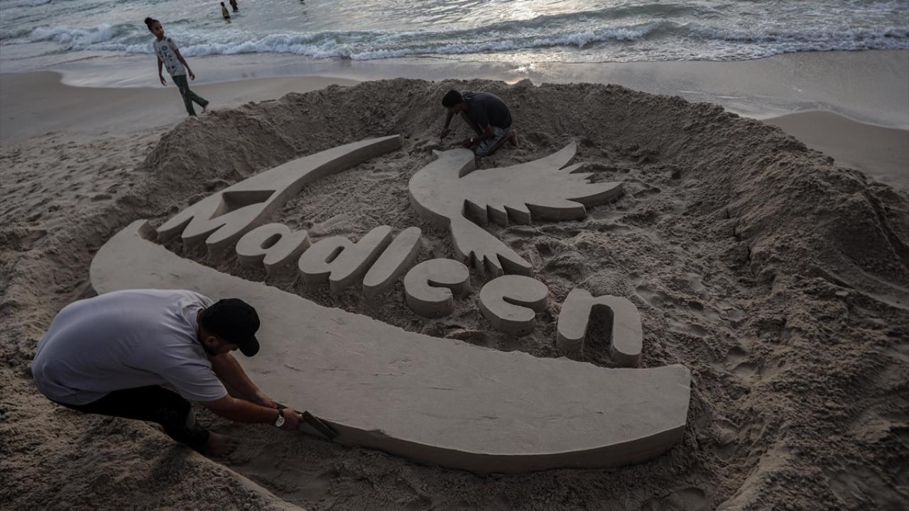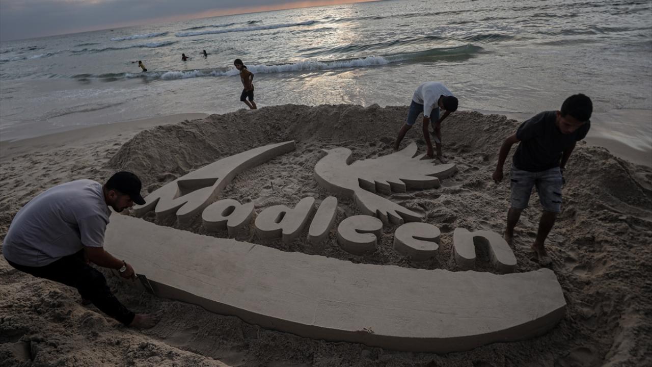 Gazzeliler kendilerine yardım taşıyan gemiye destek verdi.