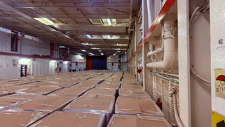 Gemide yer alan insani yardım malzemeleri arasında temel gıda maddeleri, konserve ve bebek maması gibi öğeler bulunuyor.