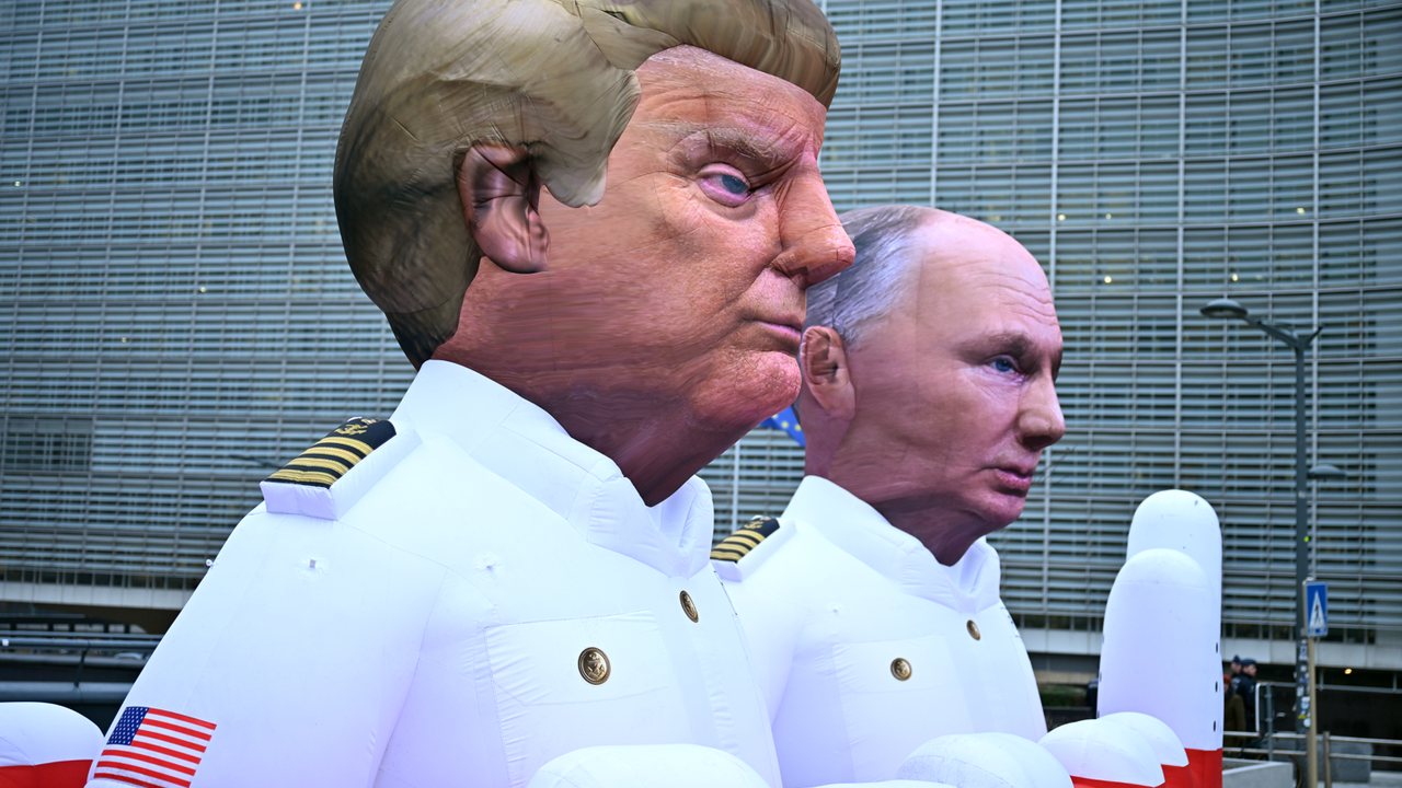 Protesto kapsamında ABD Başkanı Donald Trump ve Rusya Devlet Başkanı Vladimir Putin’i tasvir eden büyük boyutlu şişme figürler taşındı. Figürler, AB genel merkezi önünde sergilendi. Eylem sırasında görsel unsurlar ön planda tutuldu.