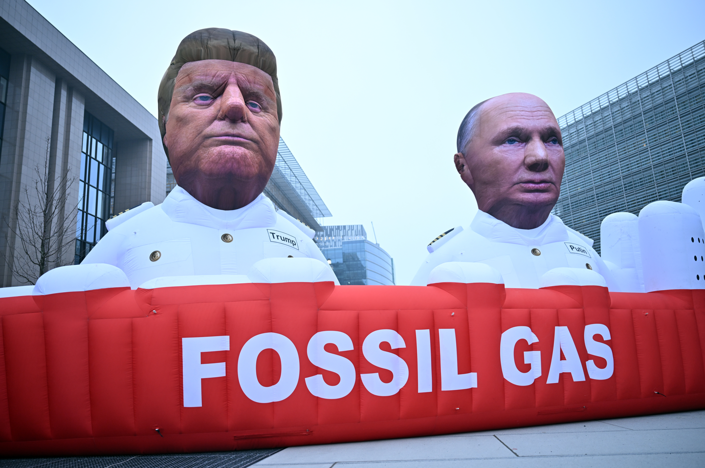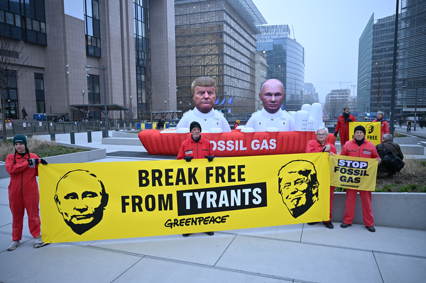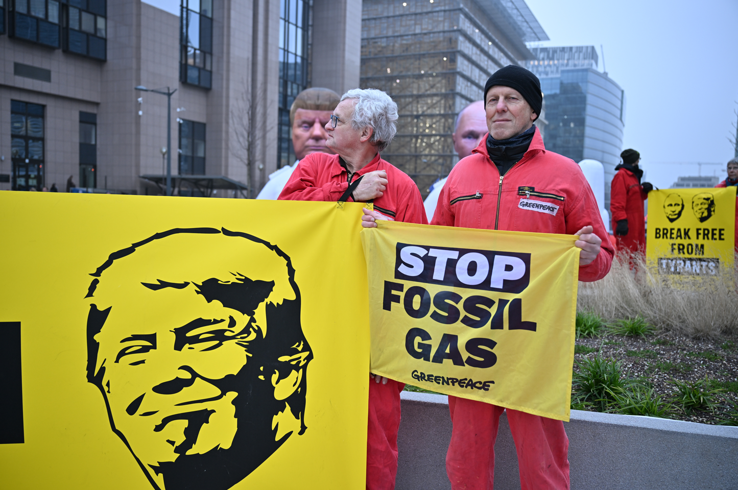 Greenpeace üyeleri, Brüksel’deki Avrupa Birliği kurumlarının önünde bir araya gelerek protesto düzenledi. Aktivistler, Avrupa’nın enerji tedarikinde ABD ve Rusya kaynaklı doğal gaz ithalatına olan bağımlılığını gündeme getirdi. Eylem alanında açılan pankartlarda enerji politikalarına ilişkin mesajlar yer aldı.