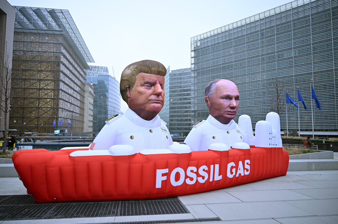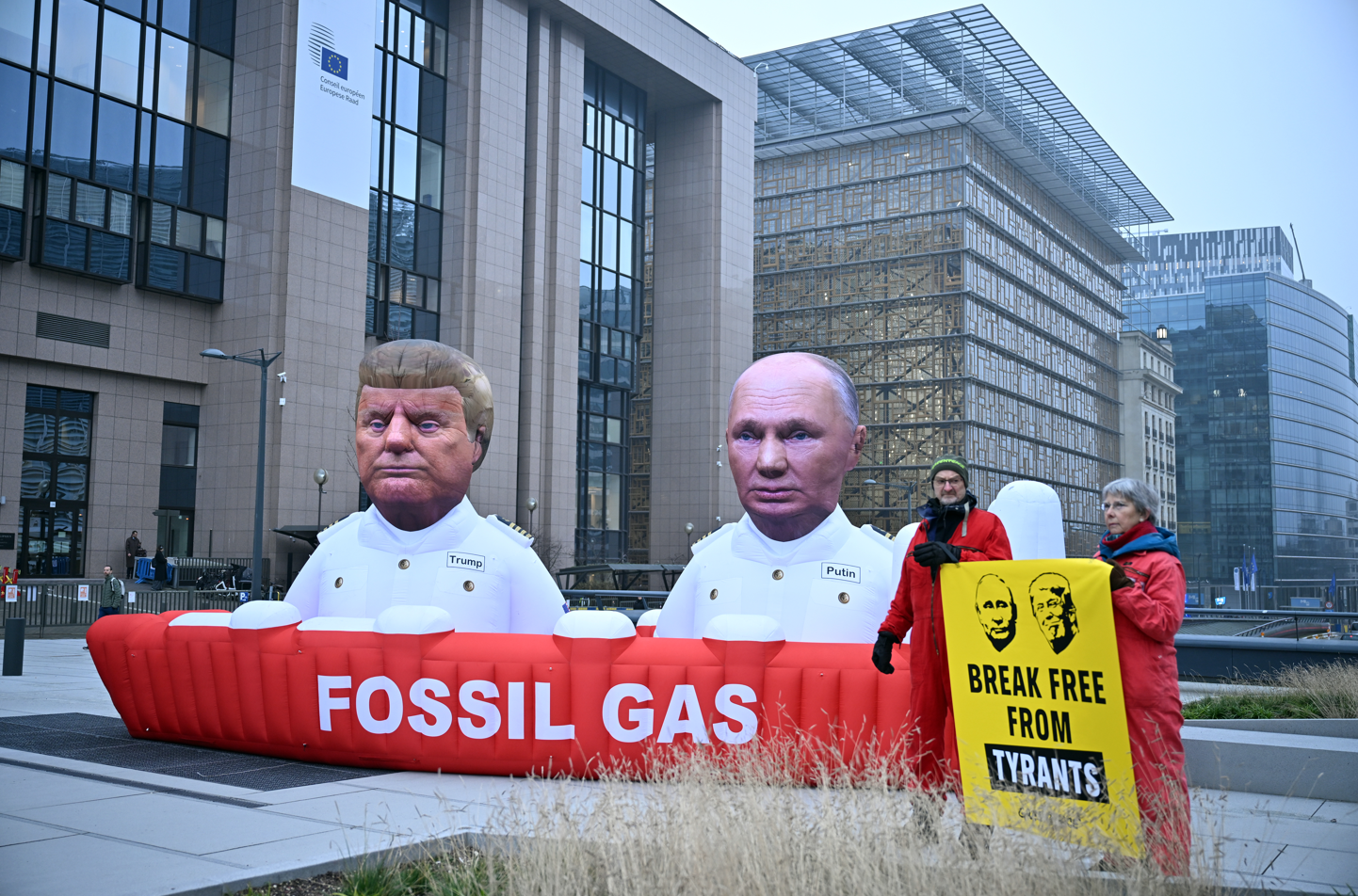 Greenpeace çevre örgütüne bağlı aktivistler, Belçika’nın başkenti Brüksel’de Avrupa Birliği (AB) genel merkezi önünde bir protesto eylemi gerçekleştirdi. Eylemde, Avrupa’nın enerji arzında ABD ve Rusya’dan ithal edilen doğal gaza olan bağımlılığı protesto edildi.