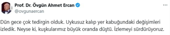 Dün gece çok tedirgin olduk. Uykusuz kalıp yer kabuğundaki değişimleri izledik. Neyse ki, kuşkularımız büyük oranda düştü. İzlemeyi sürdürüyoruz.