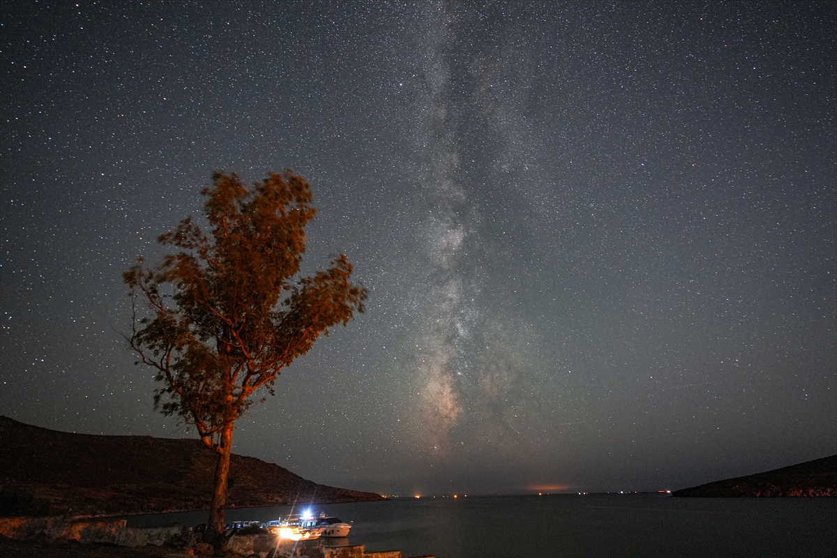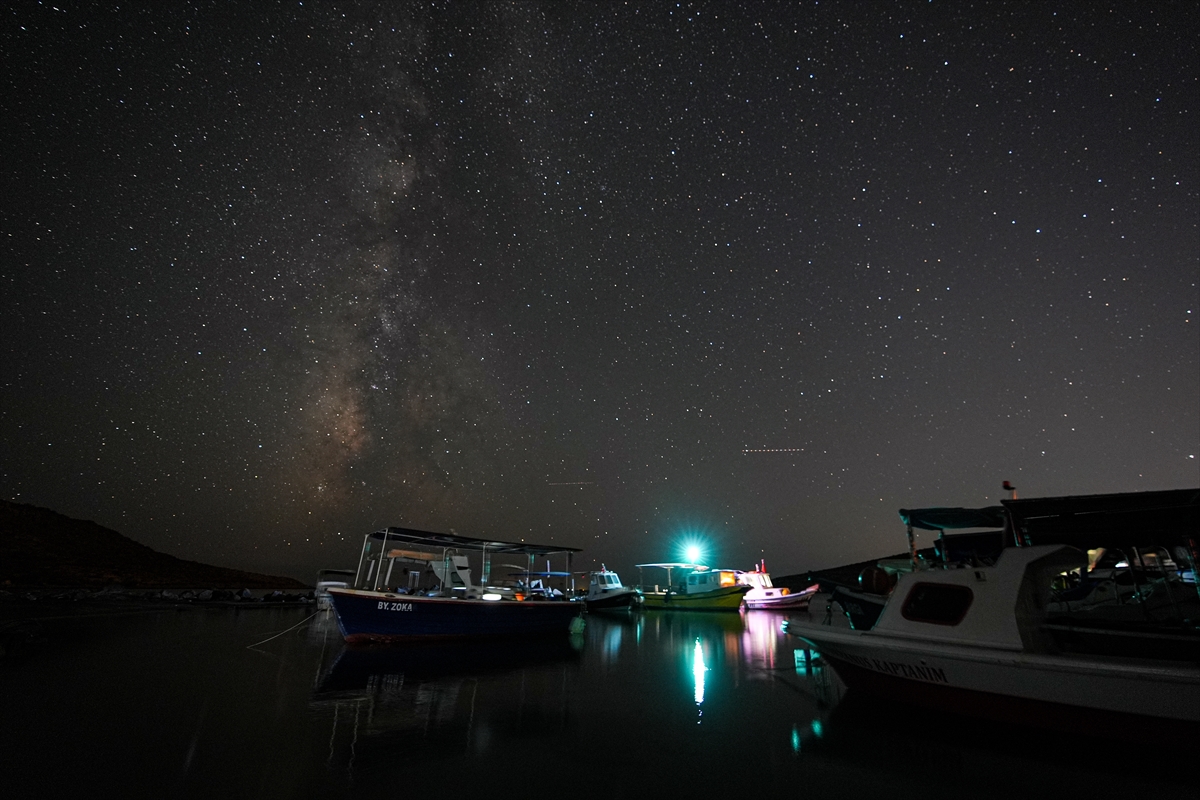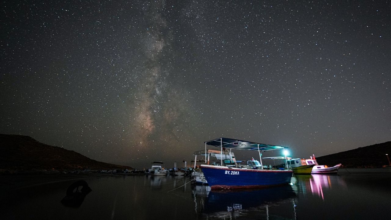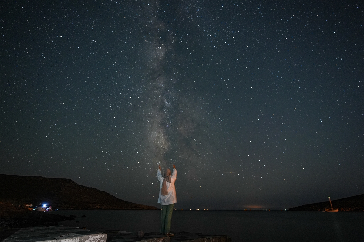 Urla’nın Zeytineli Plajı, karanlık gökyüzü ve şehir ışıklarından uzak konumuyla astronomi gözlemleri için uygun alanlardan biri olarak öne çıkıyor.
