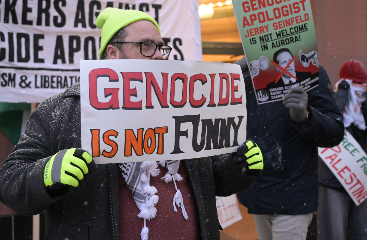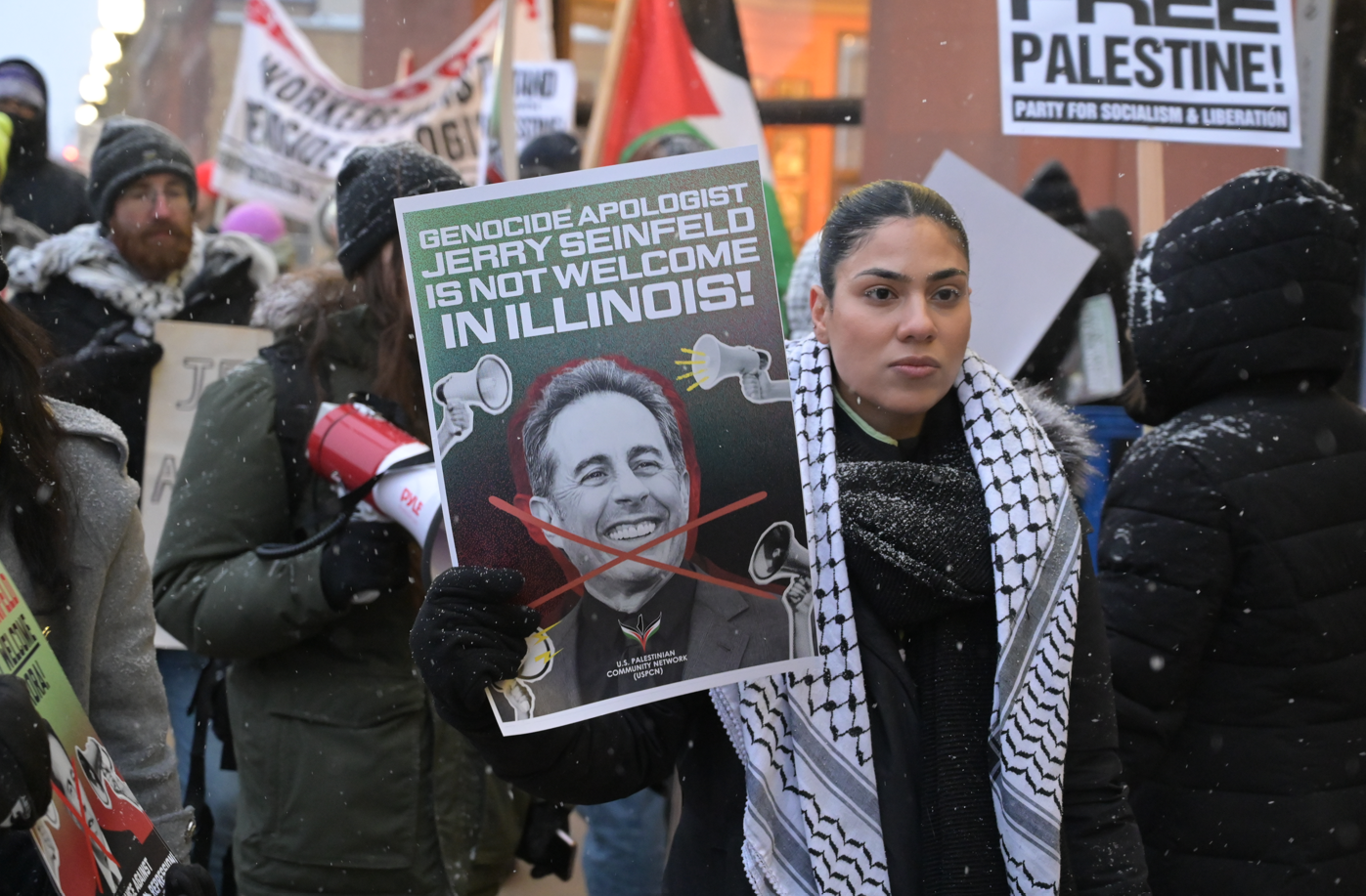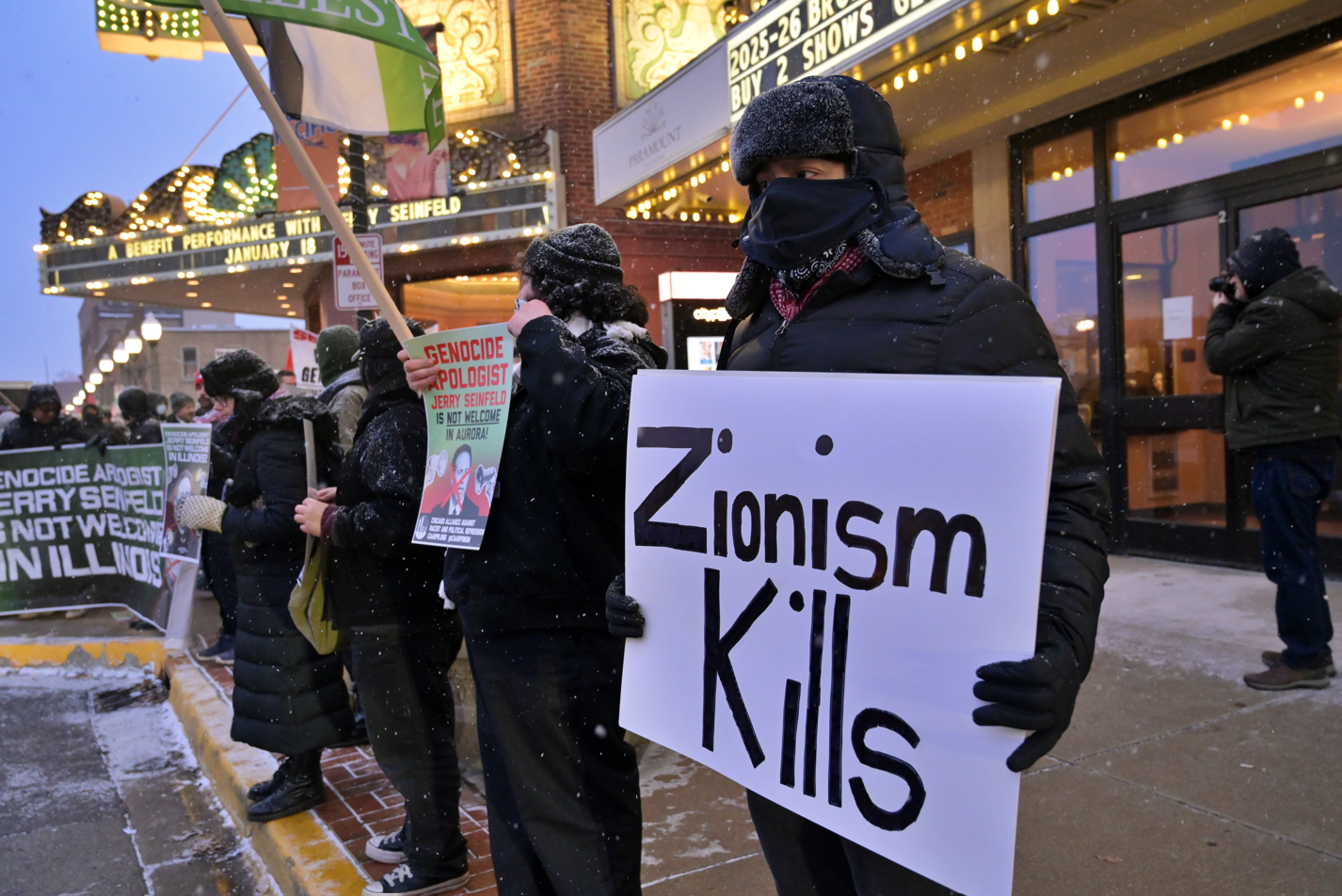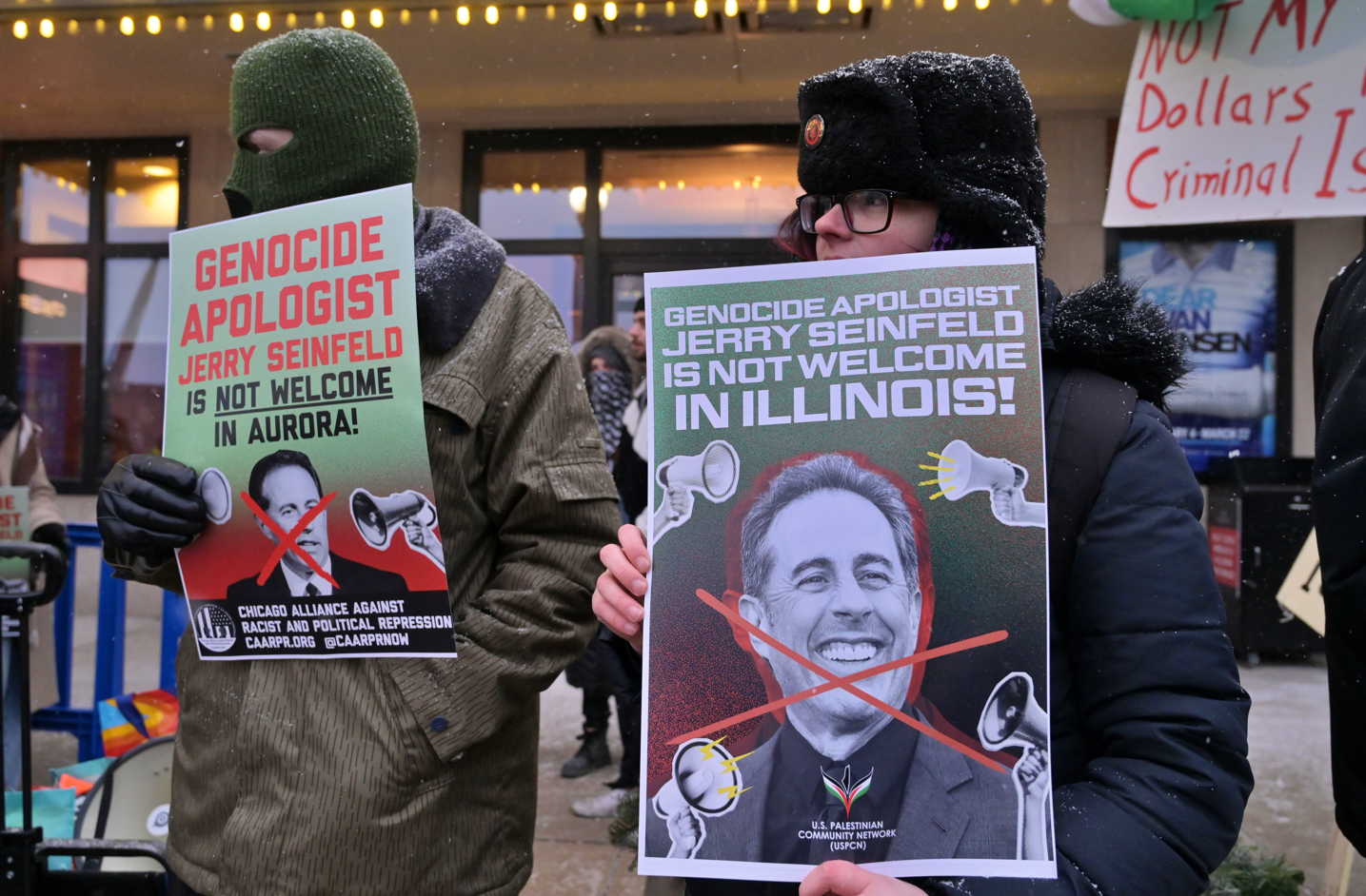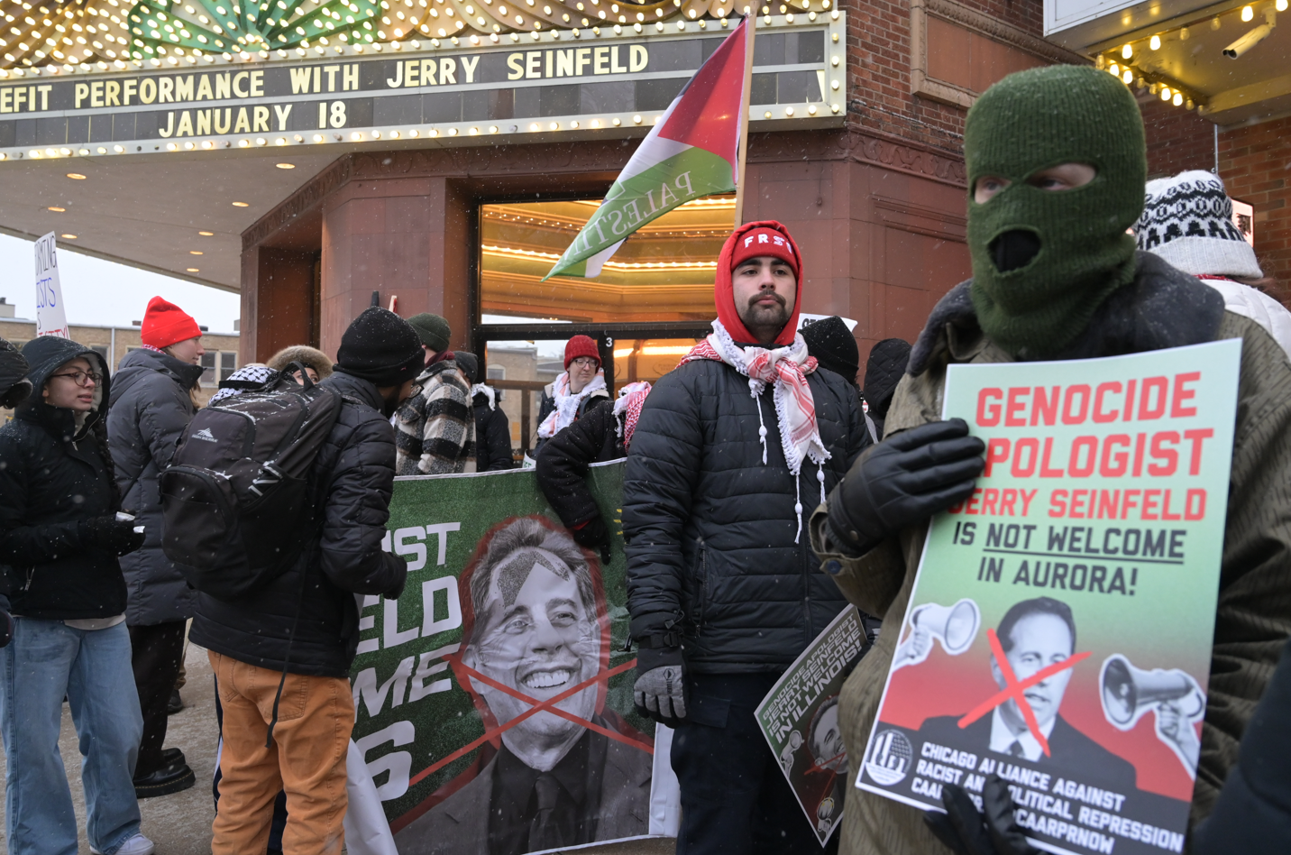 ABD’nin Illinois eyaletine bağlı Aurora kentinde, ünlü komedyen Jerry Seinfeld’in Paramount Tiyatrosu’nda gerçekleştirdiği gösteri, Filistin yanlısı aktivistlerin protestosuna sahne oldu.