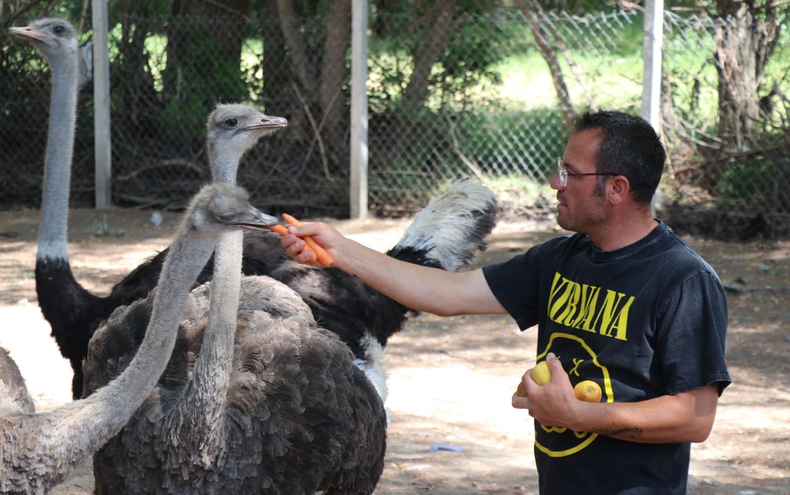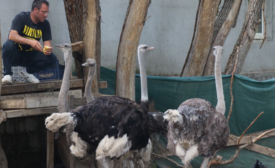 Öztürk'ün çiftliğinde deve kuşu, köpek, at, inek, su kaplumbağası gibi pek çok hayvan türünün bulunduğu çiftlikte hayvanların bakımları özenle gerçekleştiriliyor.