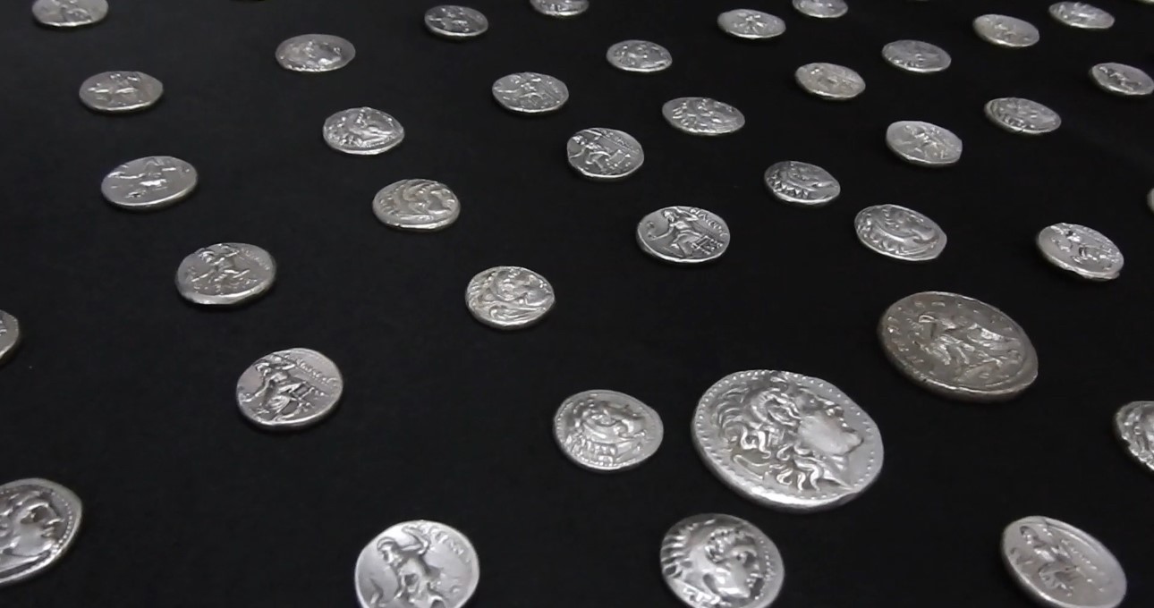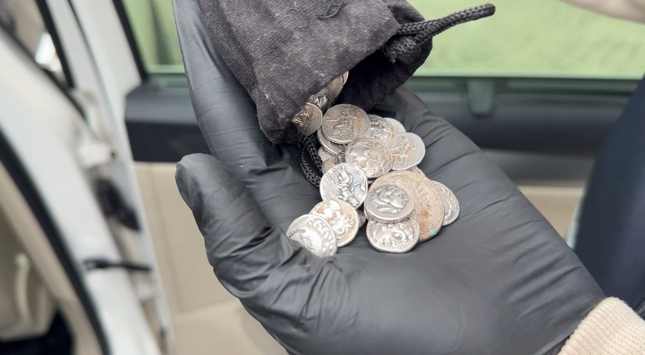 Şüphelilerin üzerlerinde yapılan aramada, ön yüzünde Büyük İskender’in Herakles tarzı portresi, arka yüzünde ise Yunan tanrısı Zeus figürü bulunan Helenistik döneme ait çok sayıda gümüş sikke ele geçirildi.