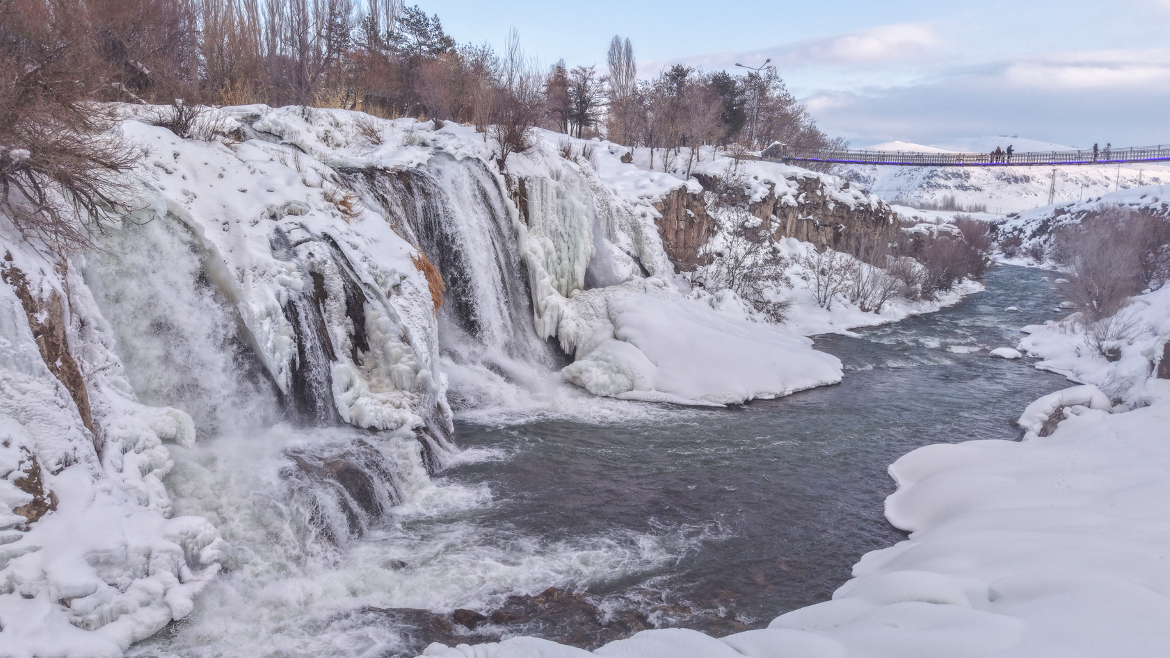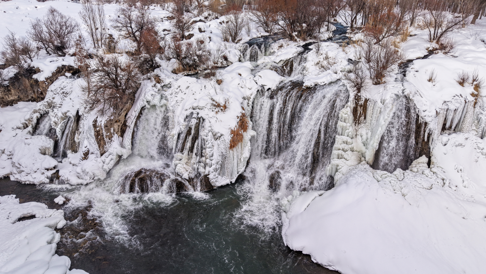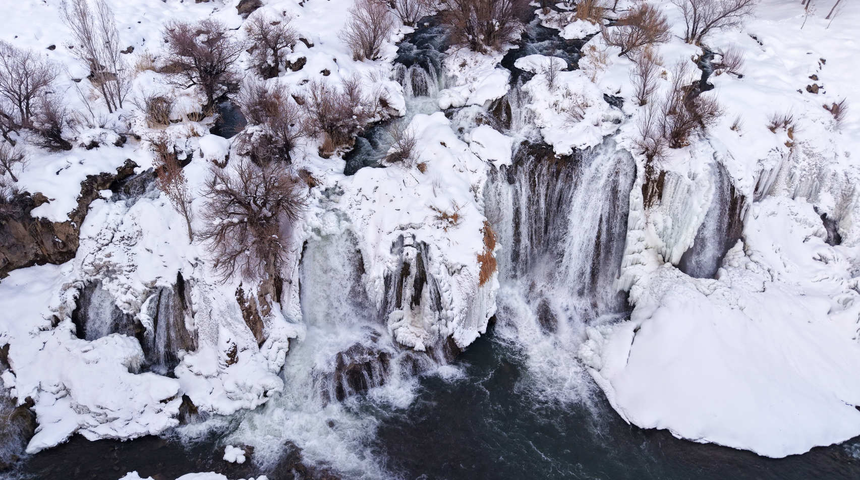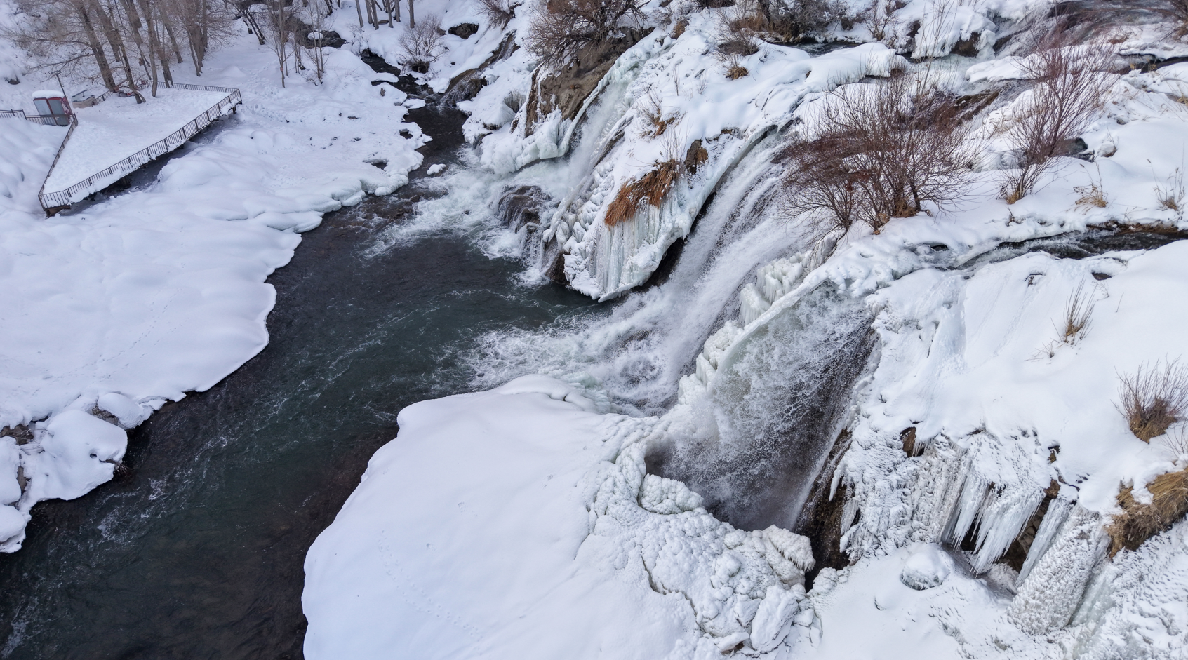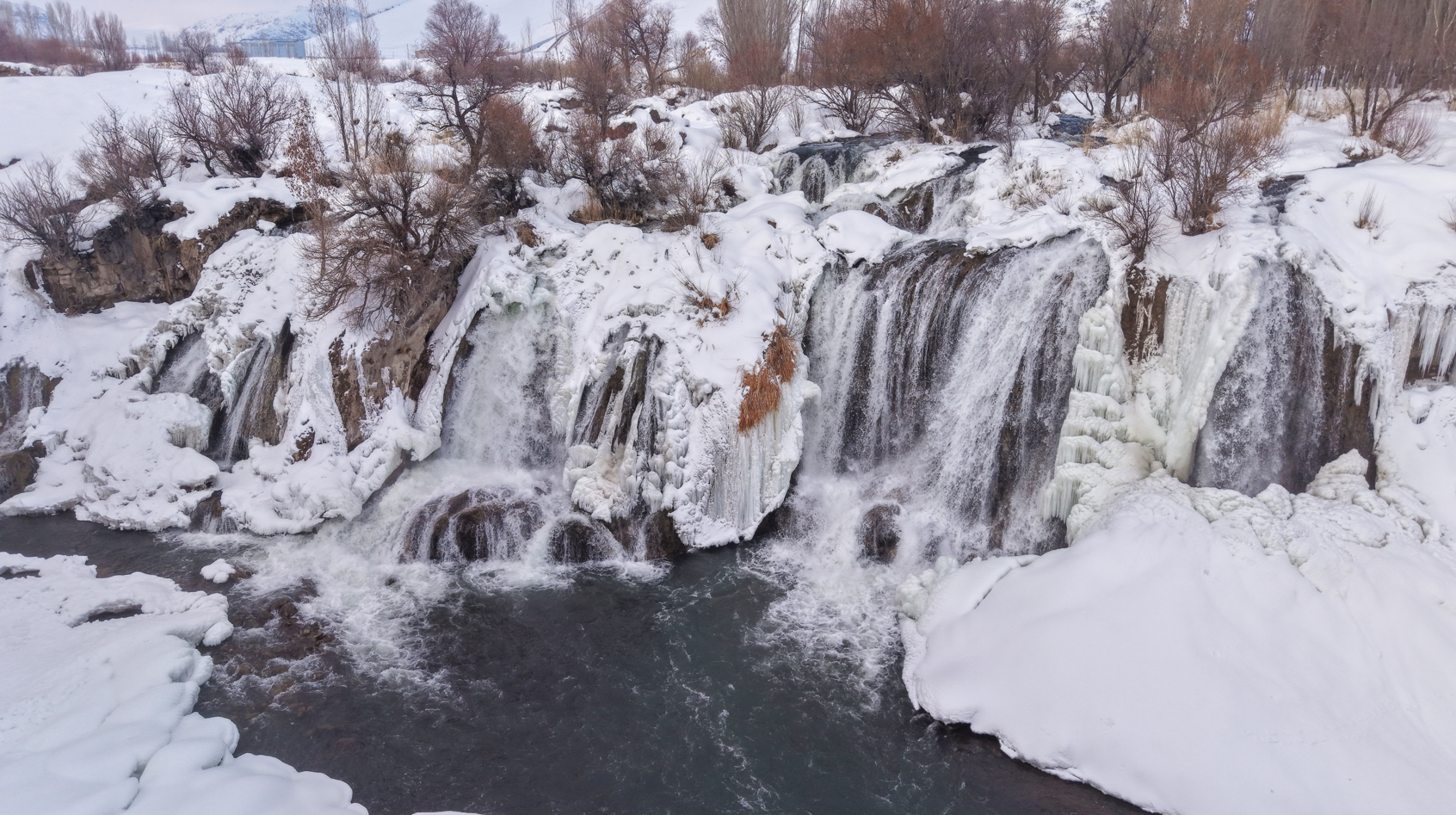 Şelalenin buz tutan kısımları ile karla kaplanan çevresi, dronla havadan görüntülendi. Bölgeye gelen vatandaşlar, kış mevsiminin etkisiyle oluşan doğal görüntüleri yerinde inceleyerek çevrede vakit geçirdi. Muradiye Şelalesi’nin kış manzarası, havadan çekilen görüntülerle kayıt altına alındı.