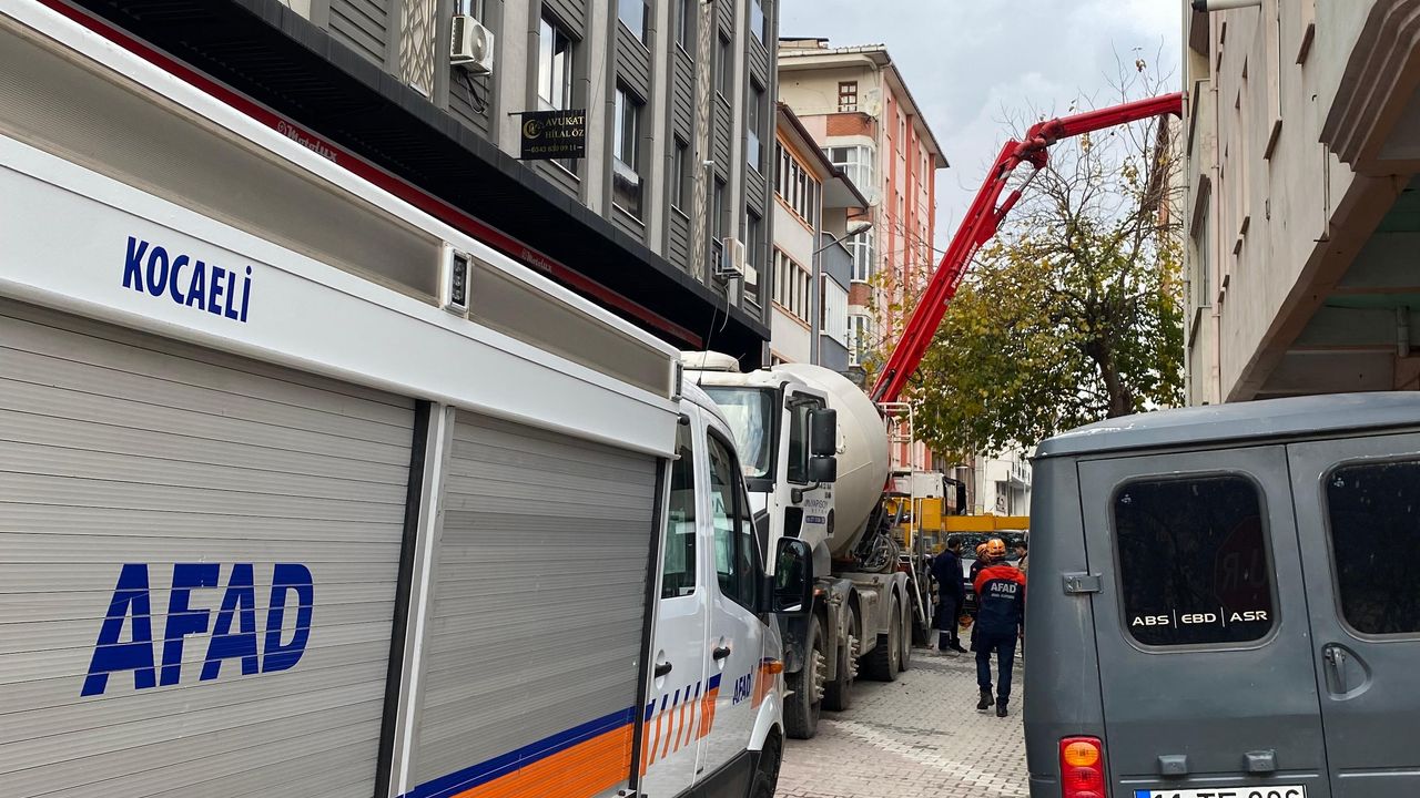 Beton dökme sırasında yan binanın 1’inci katındaki bir odanın duvarı çöktü ve oda tamamen betonla doldu.