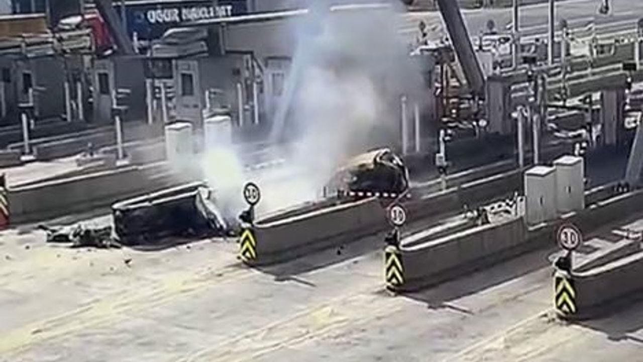 Kaza anına ilişkin güvenlik kamerası görüntülerinde, aracın yüksek hızla gişelere yaklaştığı ve refüje çarptıktan sonra alev aldığı anlar yer aldı.