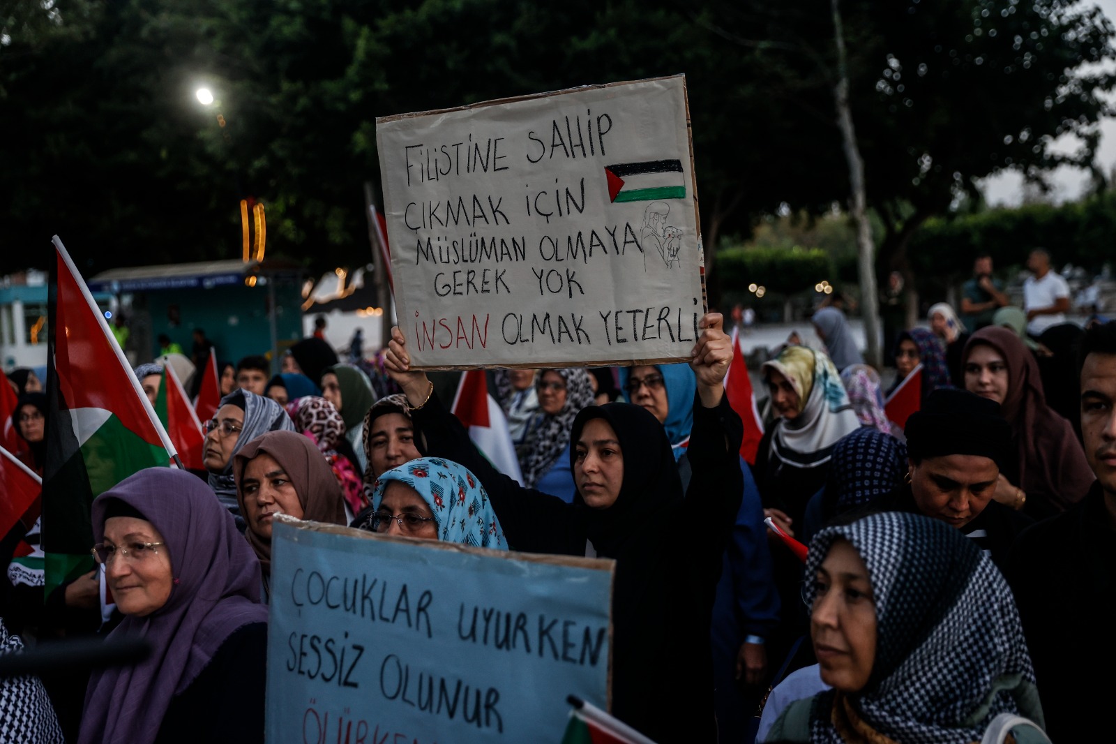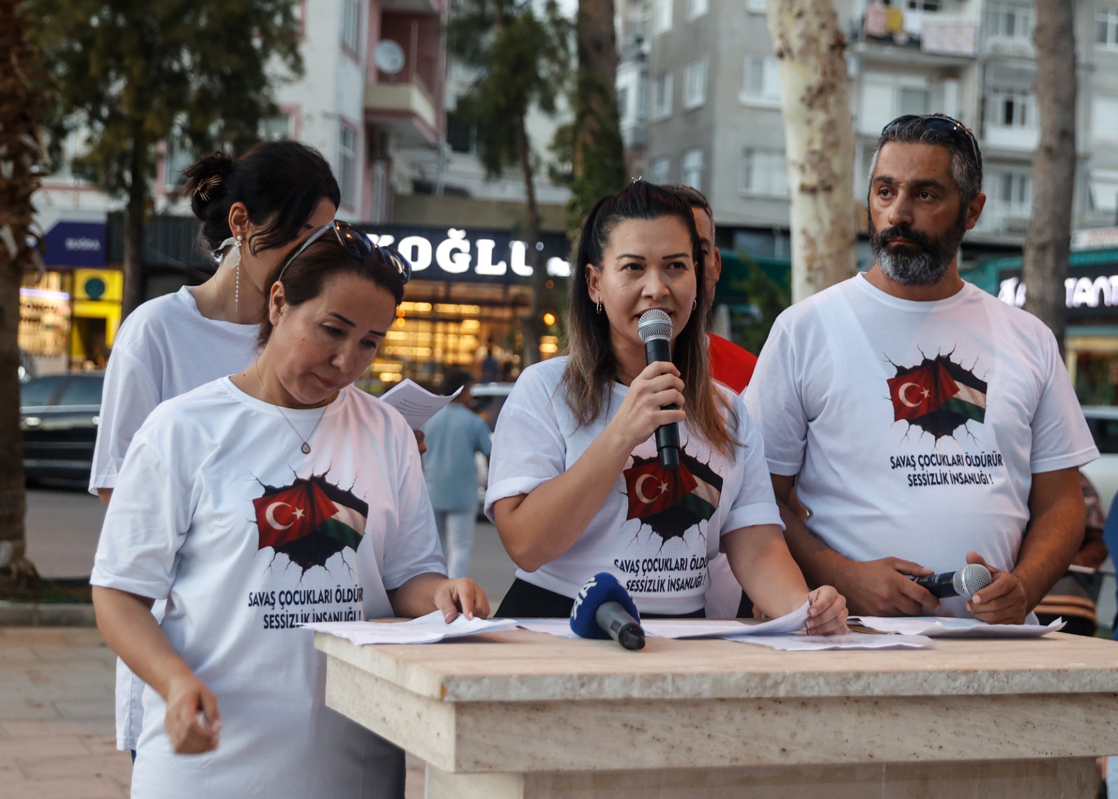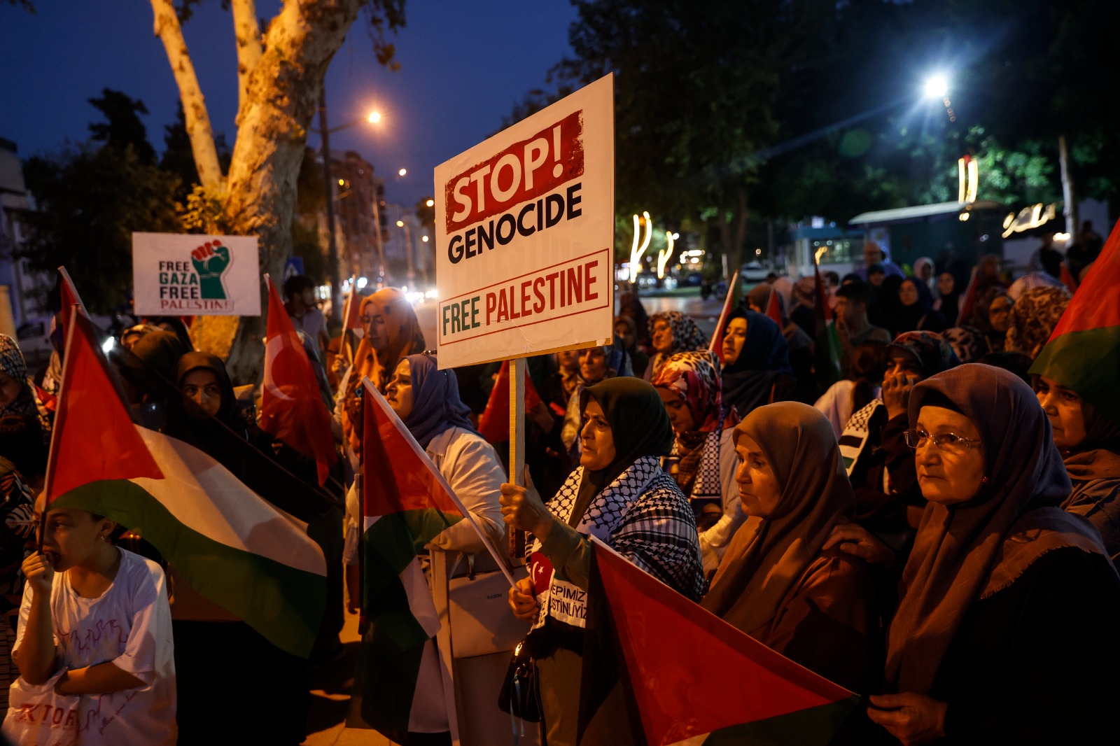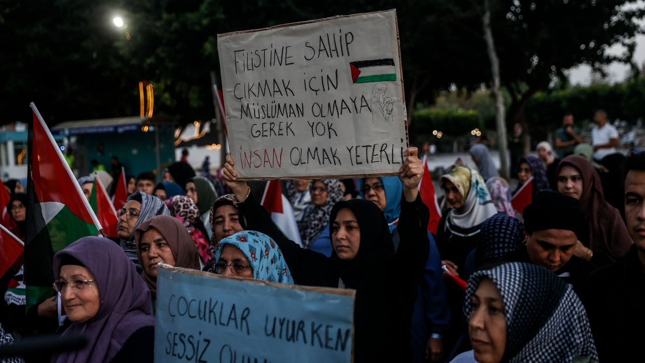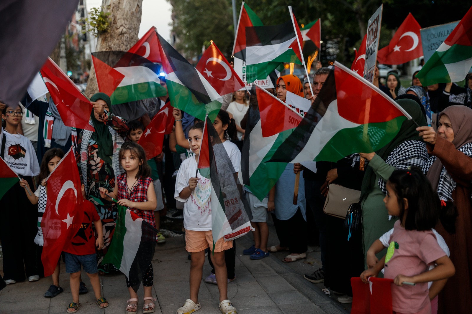 Katılımcılar, Türk ve Filistin bayraklarıyla meydana gelerek “Soykırıma hayır”, “Özgür Filistin” ve “Gazze halkı yalnız değildir” yazılı pankartlar taşıdı. Sloganlarla Gazze halkına destek verilirken, etkinlikte dayanışma vurgusu öne çıktı.