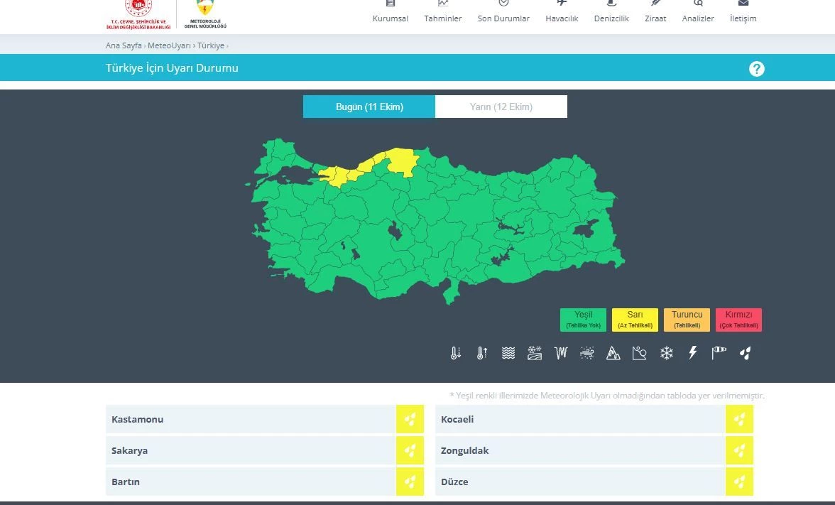 Batı Karadeniz kıyıları (Sinop hariç), Kocaeli ve Karabük çevrelerinde beklenen sağanakların yer yer kuvvetli olması muhtemel. Bu bölgelerde ulaşımda aksama, sel, su baskını ve heyelan gibi risklere karşı tedbirli olunmalı.