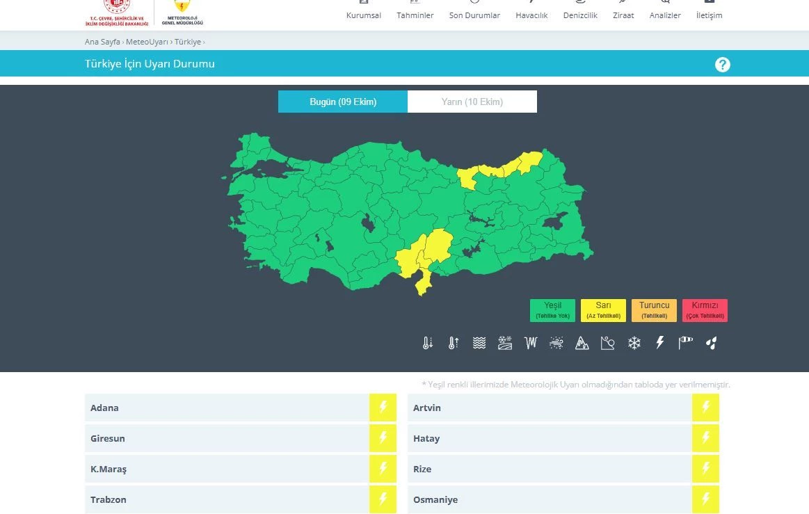 Özellikle Doğu Akdeniz’in iç kesimleri, Doğu Karadeniz kıyıları, Zonguldak, Bartın, Ordu ve Erzincan çevrelerinde dikkatli olunması istendi.