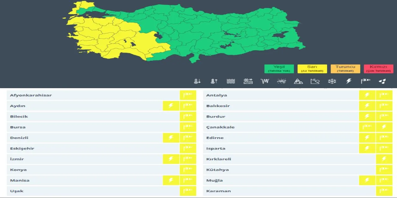 Yağışların özellikle Marmara’nın batısı, Kıyı Ege, Batı Akdeniz ile Manisa ve Denizli çevrelerinde yerel olarak kuvvetli olması bekleniyor. Yetkililer, ani sel ve su baskınlarına karşı vatandaşları uyardı.