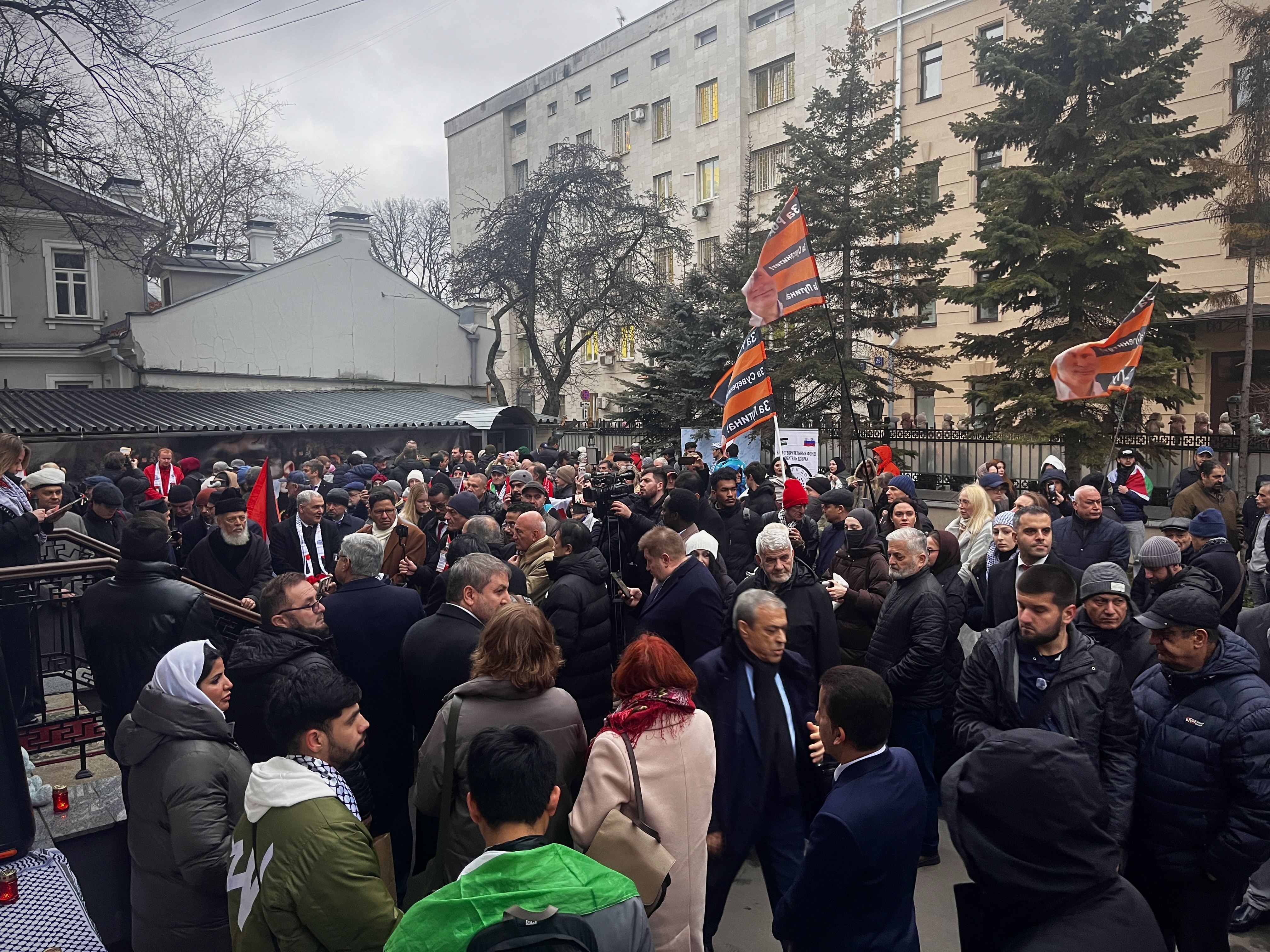 Törene Rusya Dışişleri Bakan Yardımcısı Sergey Verşinin ile Filistin’in Moskova Büyükelçisi Abdel Hafız Nofal başta olmak üzere Arap ve İslam ülkeleri büyükelçiliklerinden temsilciler katıldı.