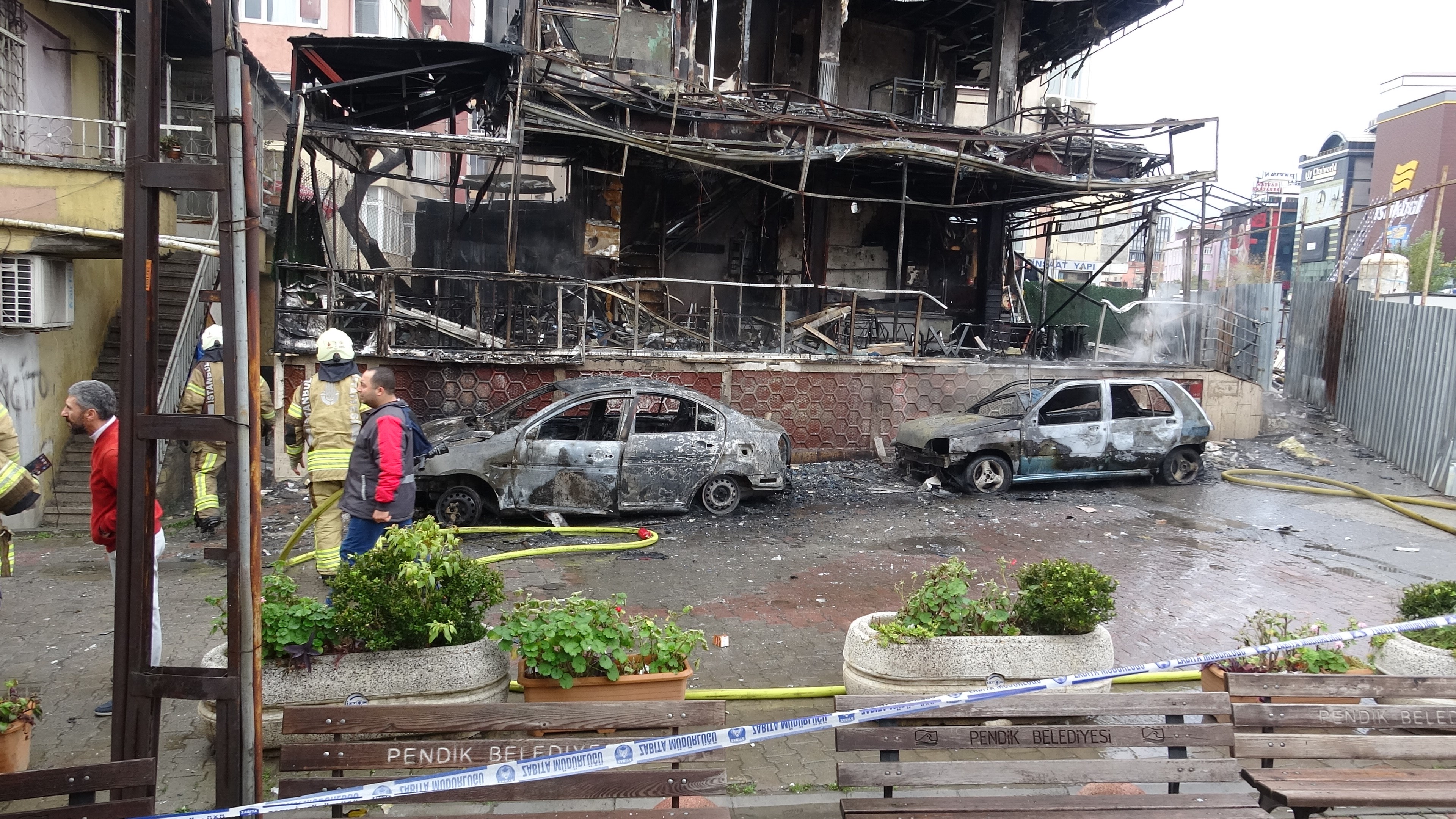 Olay, saat 11.15 sıralarında Pendik ilçesine bağlı Kaynarca Mahallesi Küçüksu Sokak’ta meydana geldi. Edinilen bilgilere göre, park halindeki bir araçta henüz belirlenemeyen bir nedenle yangın çıktı. Kısa sürede büyüyen alevler, yan tarafta bulunan bir binaya ve üç katlı bir kafeye sıçradı.
