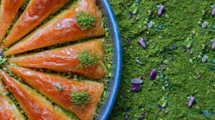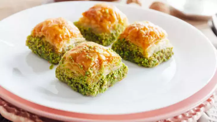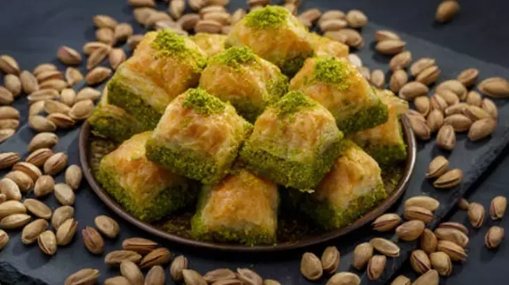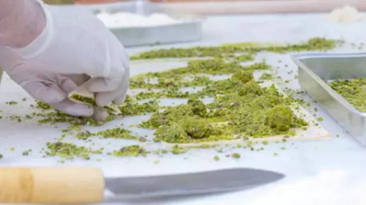 7. Fıstıkla süsleyin: Şerbeti çektikten sonra üzerine dövülmüş fıstık serpin.