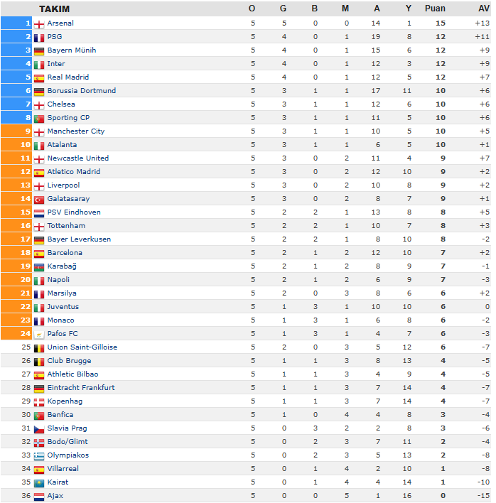 İşte Şampiyonlar Ligi'nde 5. haftanın sonunda oluşan puan durumu