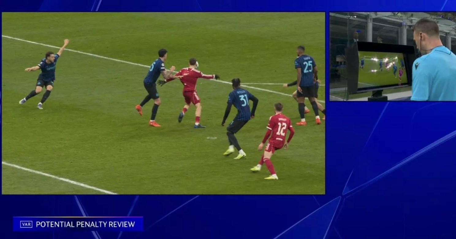 Mücadelenin 88. dakikasında Robertson ile Bastoni arasındaki ikili mücadele sonrası İngiliz oyuncu yerde kaldı. Zwayer pozisyona devam kararı verdi ancak VAR müdahalesiyle inceleme yapıldı. Alman hakem monitörden pozisyonu izledikten sonra penaltıyı işaret etti ve tartışmalar başladı.