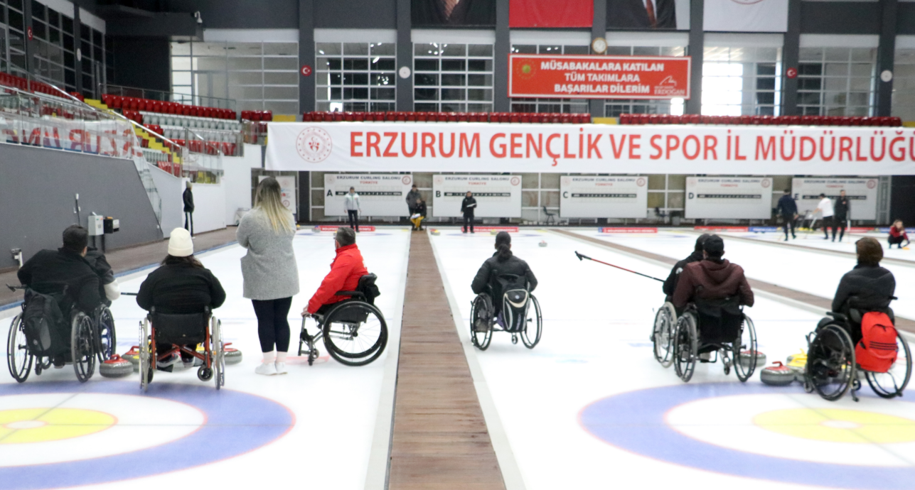 Türkiye'nin dört bir yanından Erzurum’a gelen tekerlekli sandalye curling sporcuları, milli takım kadrosuna seçilebilmek için buz pistinde kıyasıya mücadele ediyor. Ay-yıldızlı formayı giyerek Türkiye’yi uluslararası organizasyonlarda temsil etmeyi hedefleyen sporcular, antrenörlerin gözetiminde en yüksek puanı almak için ter döküyor.
