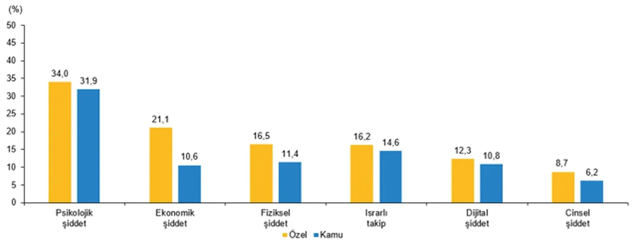 TÜİK verileri Türkiye’de kadına yönelik şiddetin yaygınlığını ve şiddet türlerinin yaş, medeni durum, eğitim ve bölgeye göre farklılıklarını net biçimde ortaya koyuyor. Psikolojik şiddet yüksek seviyede, genç kadınlar ve özel sektörde çalışanlar risk grubunda.