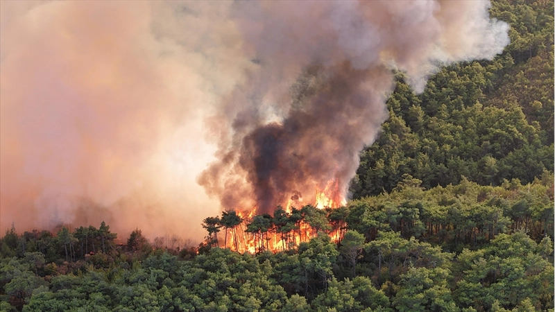 Yetkililer, alevleri kontrol altına almak için kara ve hava ekipleriyle eş zamanlı müdahale yürütüyor.
