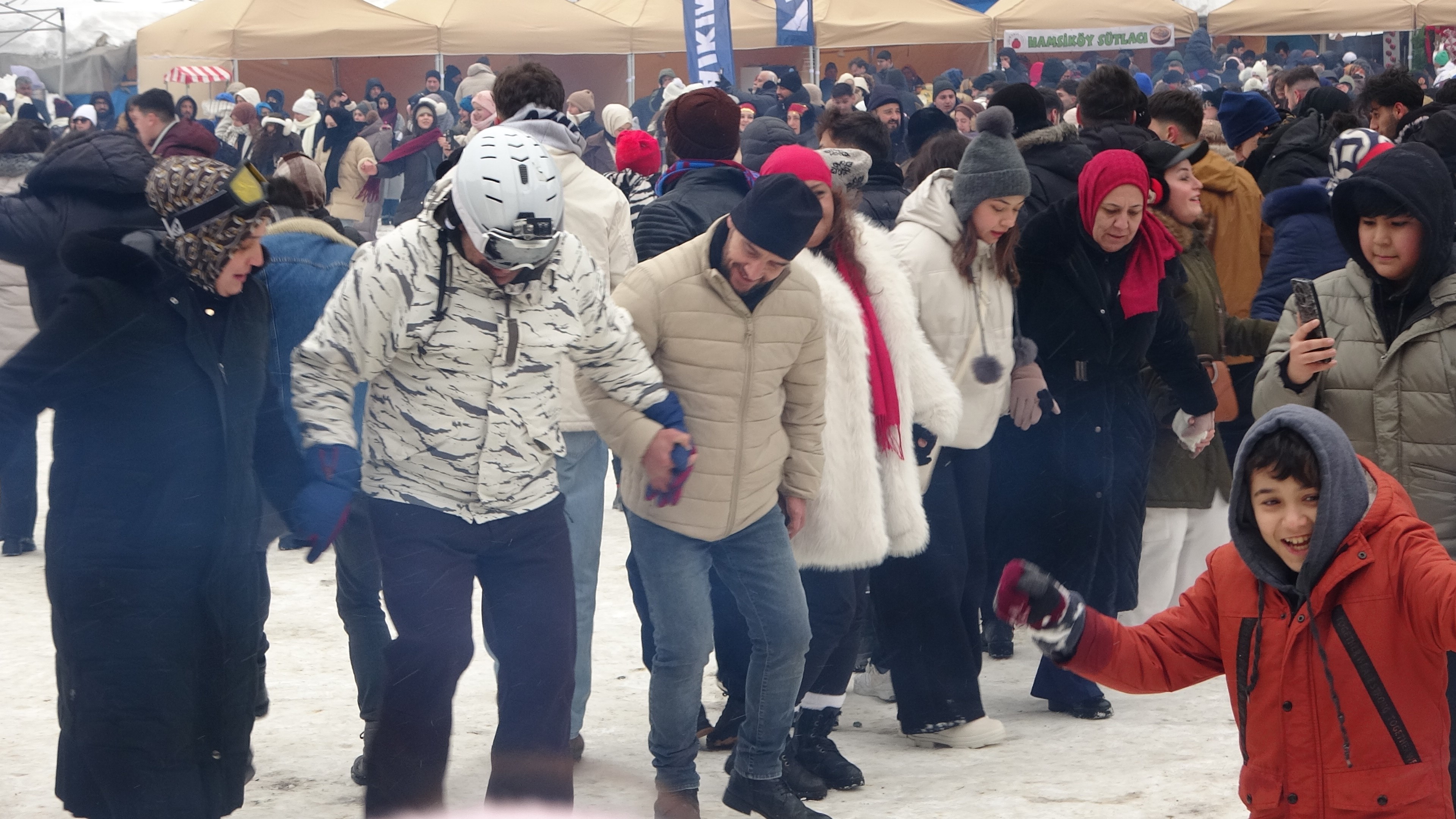 Buz tutan Uzungöl manzarası eşliğinde doğanın tadını çıkaran ziyaretçiler, sahne alan yöresel sanatçılarla birlikte horon oynayarak keyifli anlar yaşadı.