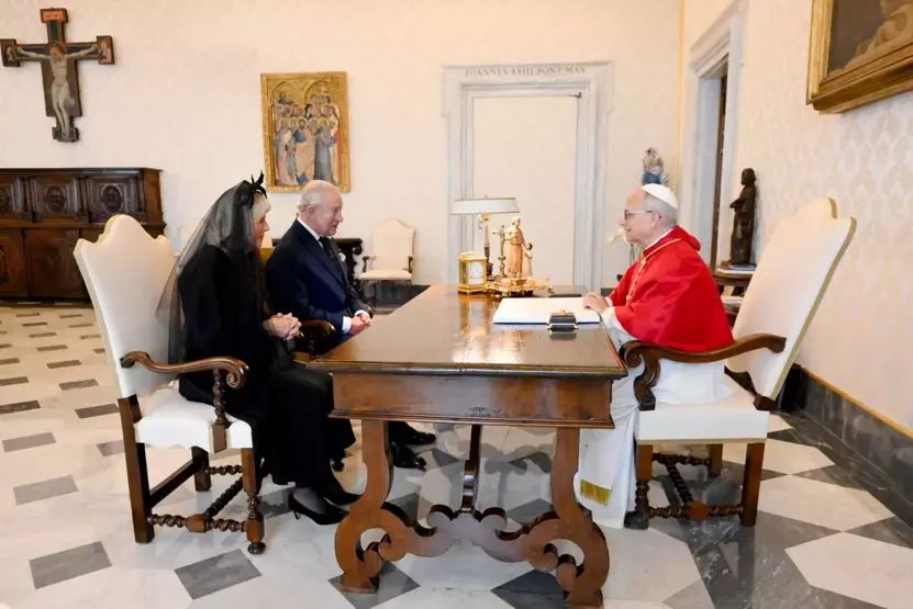Birleşik Krallık Kralı 3. Charles ve eşi Kraliçe Camilla, Vatikan’da Papa 14. Leo ile bir araya geldi. Ziyaret, Anglikan Reformu’ndan 500 yıl sonra bir İngiliz hükümdarın ilk kez Sistina Şapeli’nde bir papa ile halka açık şekilde dua etmesiyle tarihî bir önem taşıyor.
