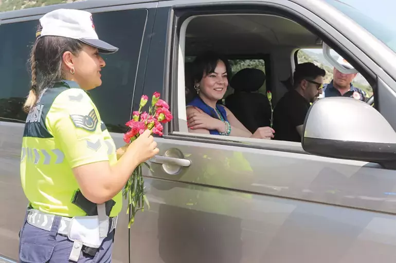 Antalya’da jandarma ekipleri sürücülere emniyet kemeri, alkol ve hız kontrolleri yaparken, yorgun görülen sürücülere çay ikram edip dinlenmeleri için destek verdi.