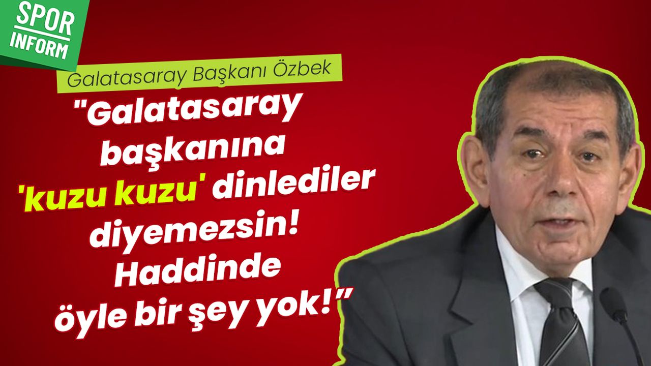 Dursun Özbek: Sen Galatasaray Başkanı veya Başkan Vekiline "Kuzu kuzu dinlediler" diyemezsin. Haddinde böyle bir şey yok. ne zannediyorsun kendini? Nerede zannediyorsun kendini? Sportif faaliyette miyiz yoksa başka bir şeyde mi? Dursun abi Dursun abi diyorsun sonra da kuzu kuzu dinlediler diyorsun.