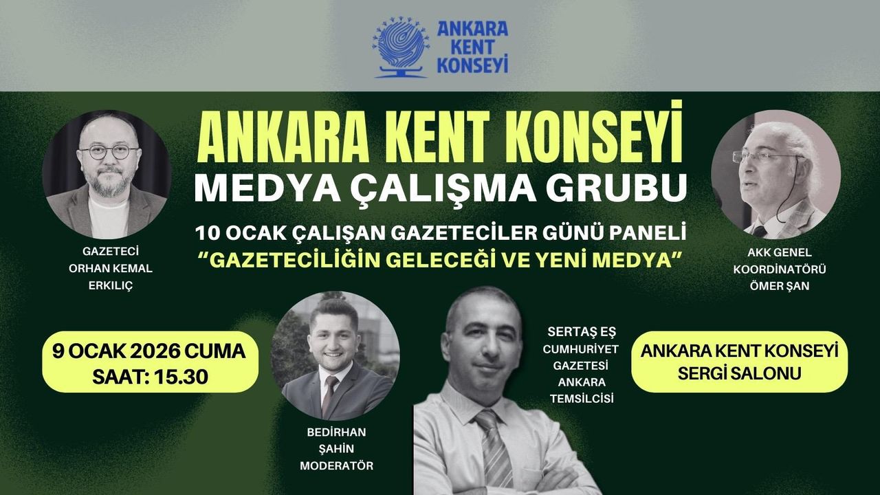 Ankara Kent Konseyi Medya Çalışma Grubu’nun organizasyonuyla düzenlenecek etkinlikte, Cumhuriyet Gazetesi Ankara Temsilcisi Sertaç Eş konuk olarak yer alacak. Program kapsamında gazeteciliğin güncel sorunları, yeni medya düzeni ve mesleğin geleceğine ilişkin başlıklar katılımcılarla paylaşılacak. Panel, Çalışan Gazeteciler Günü dolayısıyla Ankara’daki gazeteciler ve vatandaşları bir araya getirmeyi amaçlıyor.