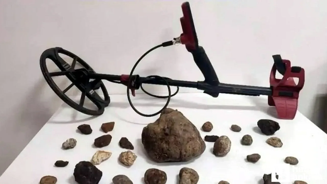 Kazı alanında yapılan aramada, kürek, kazma, halat ve dedektör ile bazı taşlar ele geçirildi.
